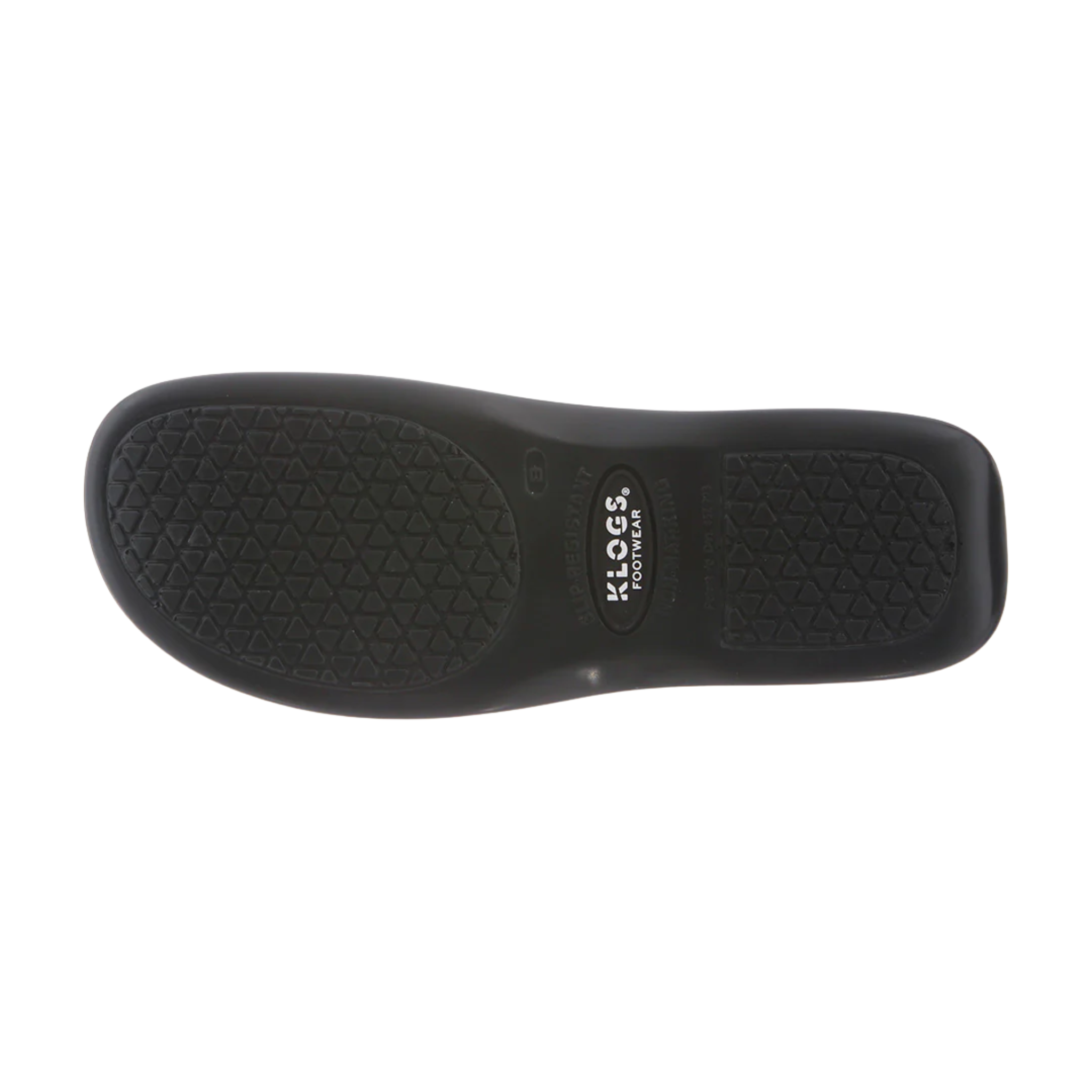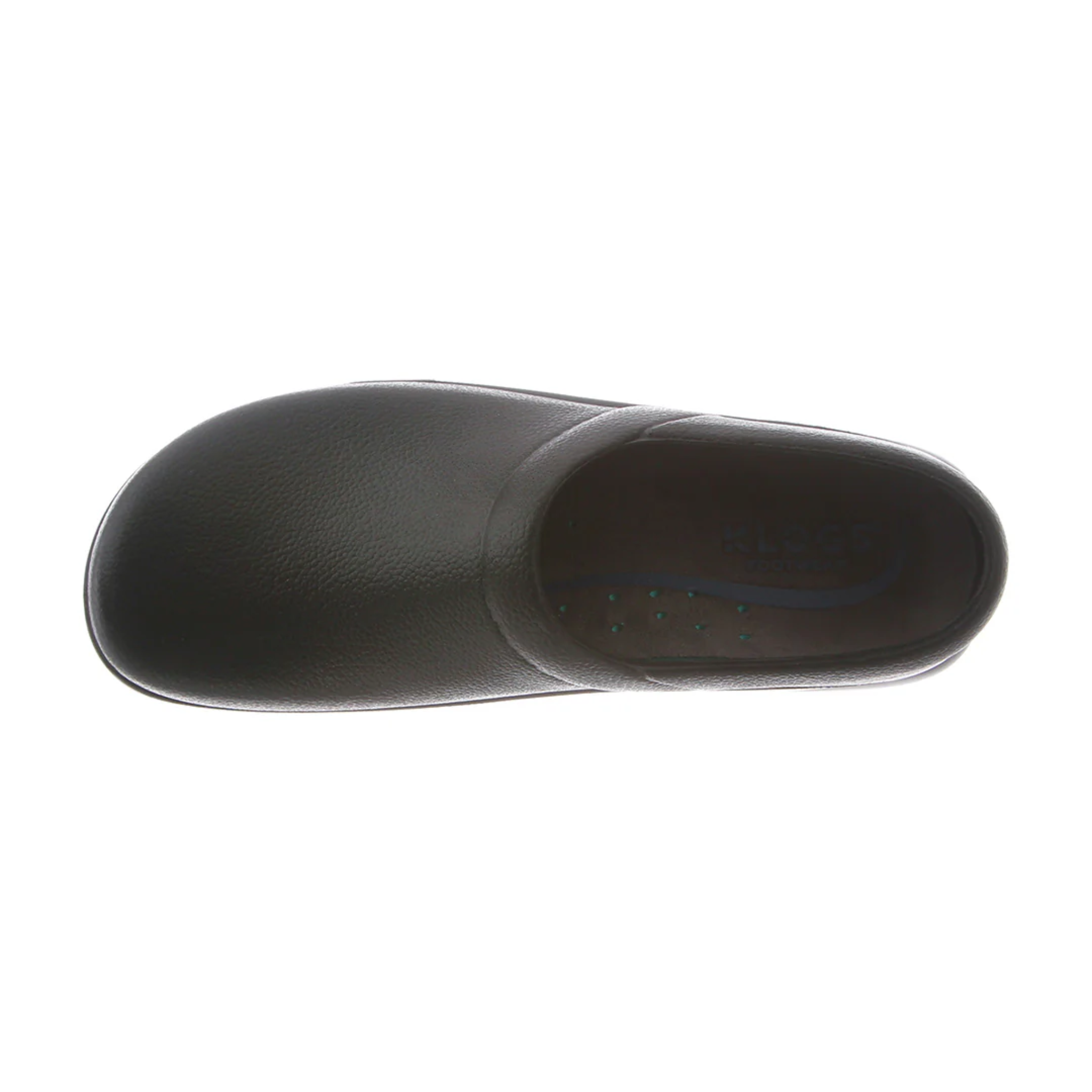 These Klogs Men's Bistro Work Shoes feature slip-resistant PURGrip treads designed to keep you stable on wet and oily surfaces. The open-back clog design offers easy on-and-off convenience, while the molded polyurethane construction provides durability through long shifts. TRUComfort insoles deliver arch support and cushioning that lasts, and the lightweight TRUBase outsole flexes naturally with your movement. Orthotic-friendly and sized specifically for the male foot, these shoes combine comfort with the safety features you need when working in kitchens or other food service environments.