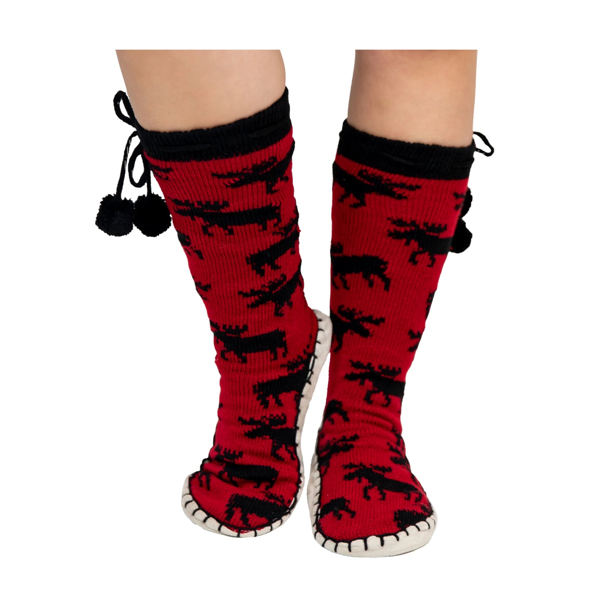 Step into warmth and whimsy with the Lazy One Mukluk Slippers in red and black.