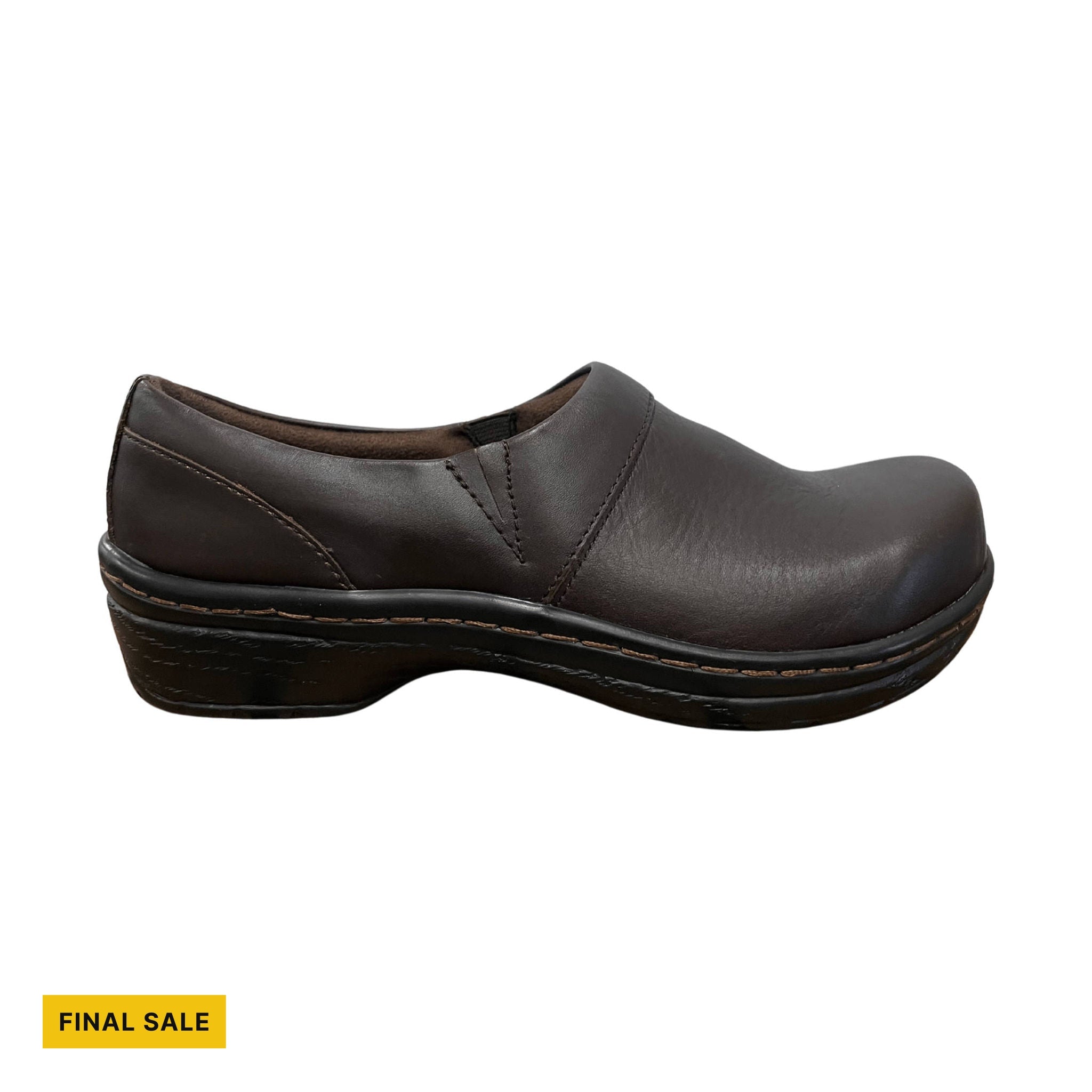 - Zueco cerrado con puntera amplia y tacón bajo