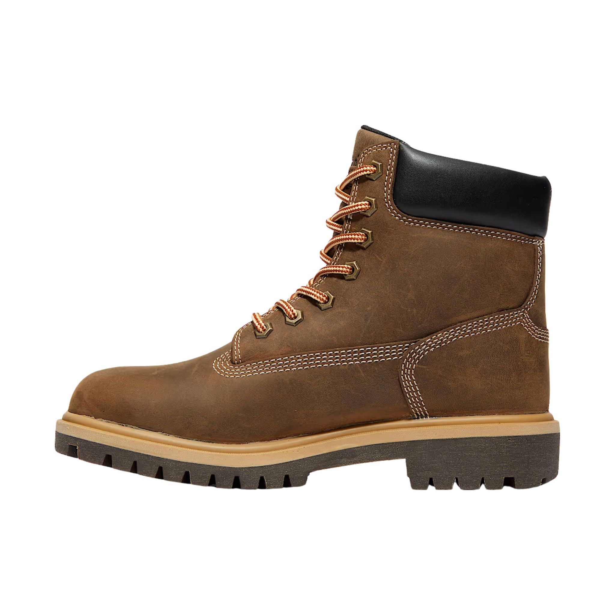 - Premium Timberland® seam-sealed, waterproof leather uppers with comfortable padded collars to their heat-, oil-, slip-, and abrasion-resistant rubber lug outsoles for enhanced traction