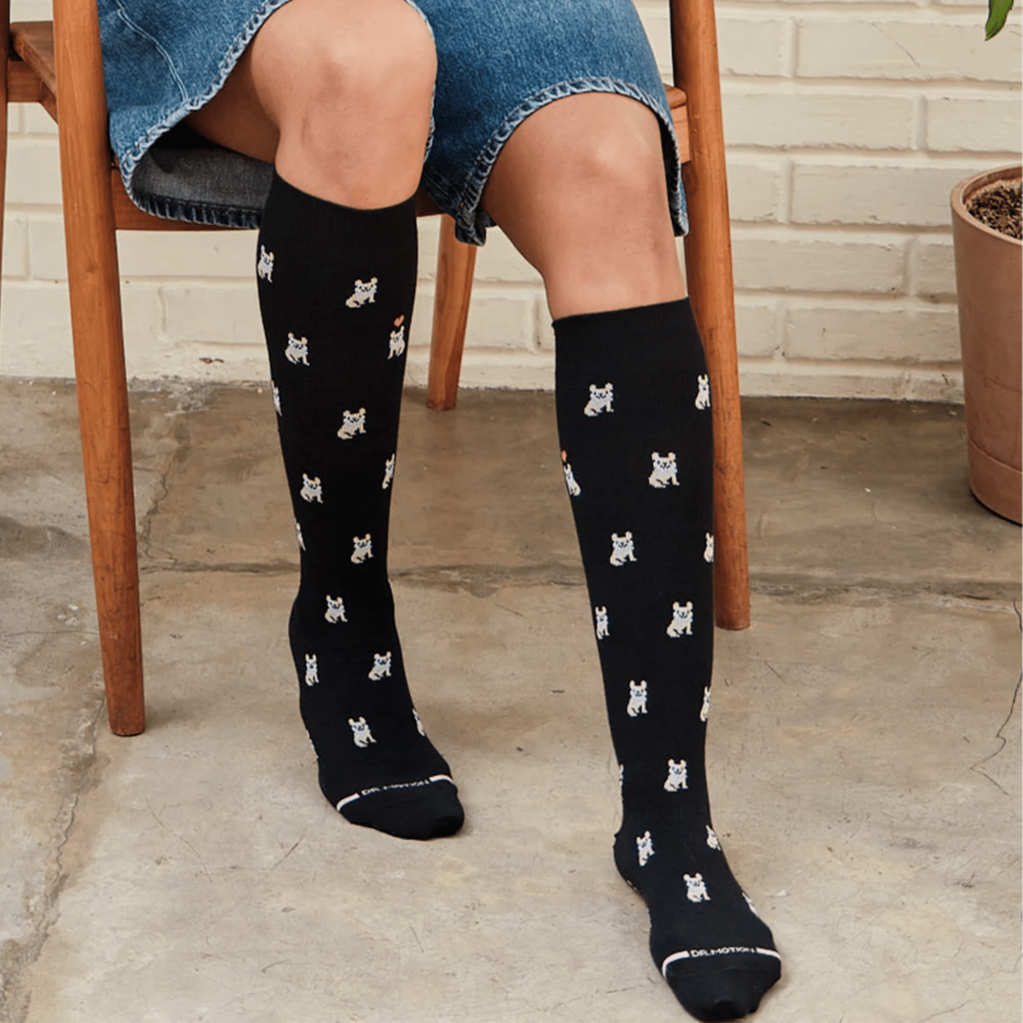 Calcetines hasta la rodilla Dr. Motion para mujer con diseño de bulldog francés - Denim Heather