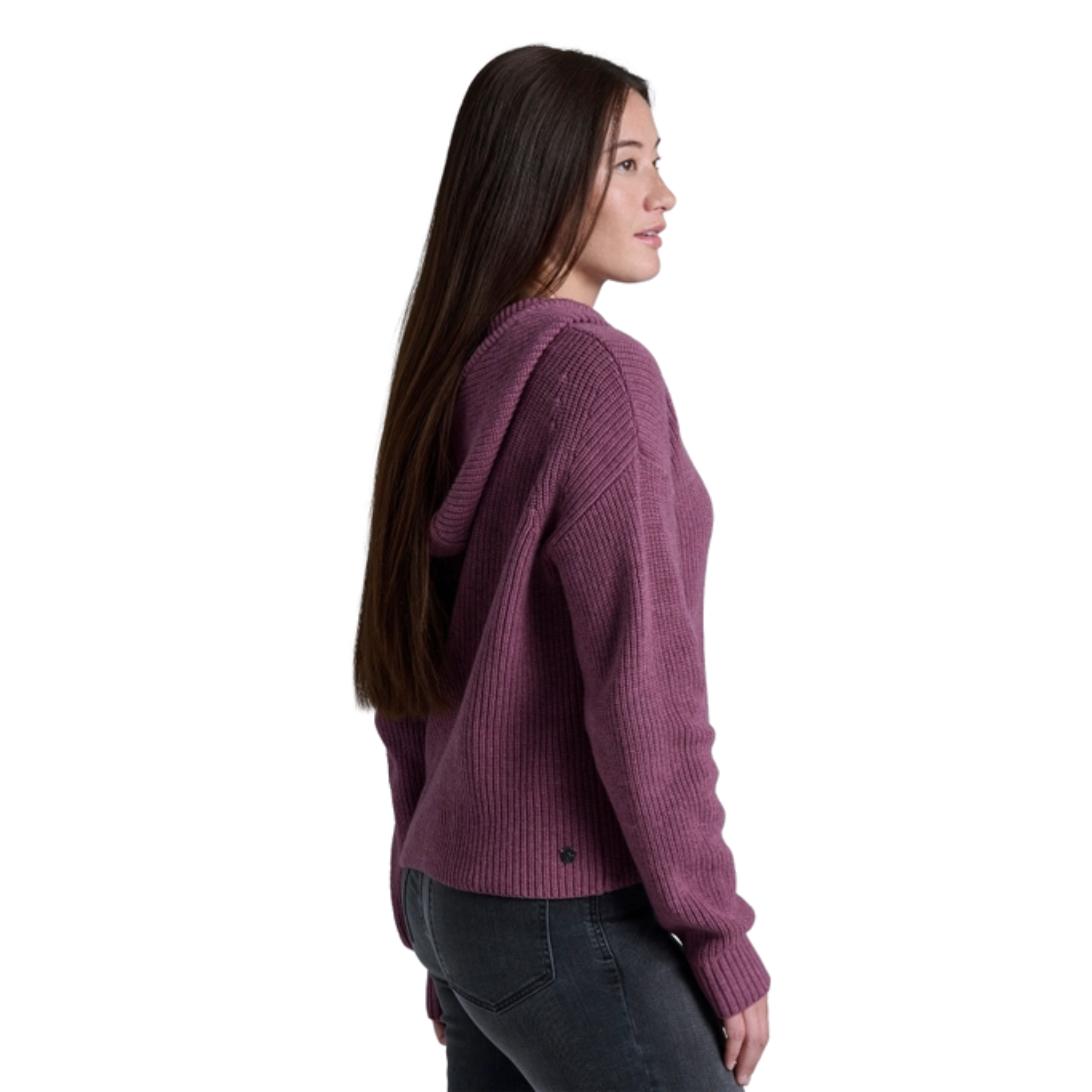 Wrap yourself in cozy comfort with the Kuhl Women's Fireside Sweater Hoody in Mauve.