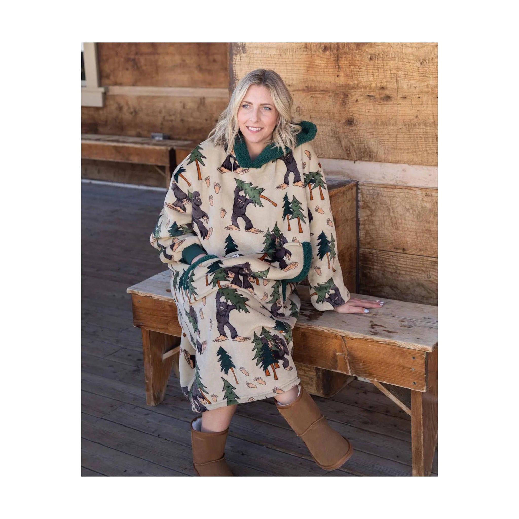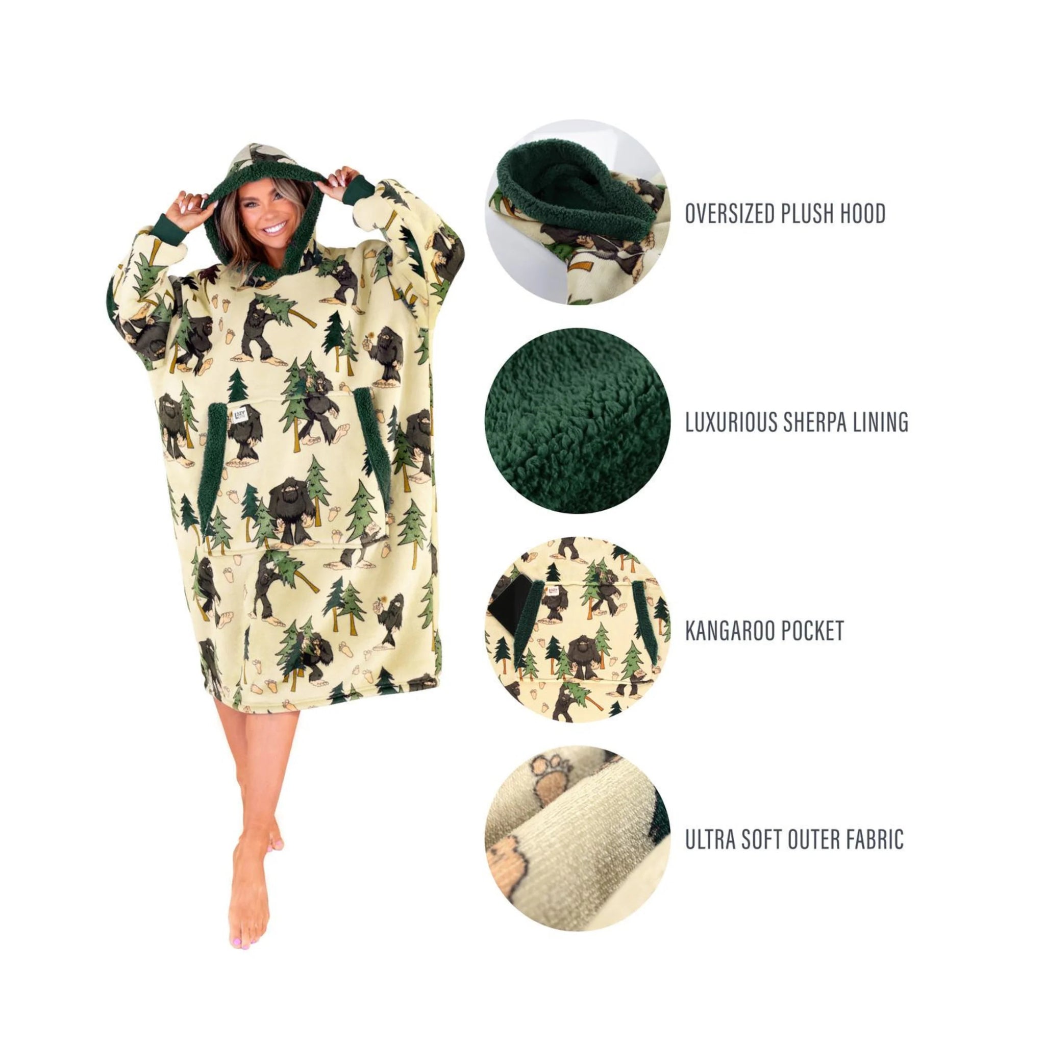 Wrap yourself in cozy holiday charm with the Lazy One Blanket Hoodie - Bigfoot.