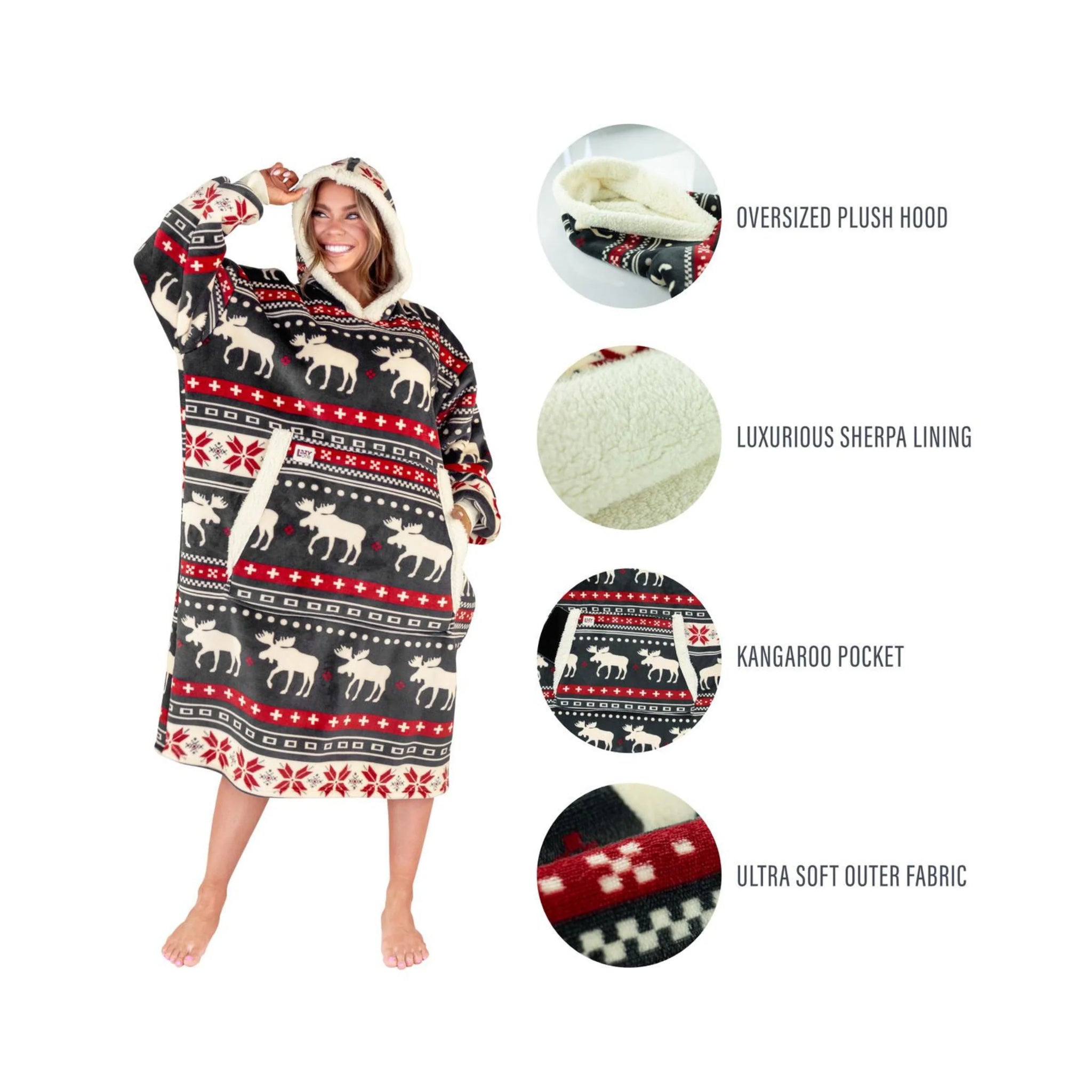 Wrap yourself in cozy holiday charm with the Lazy One Blanket Hoodie - Cabin Fair Isle.