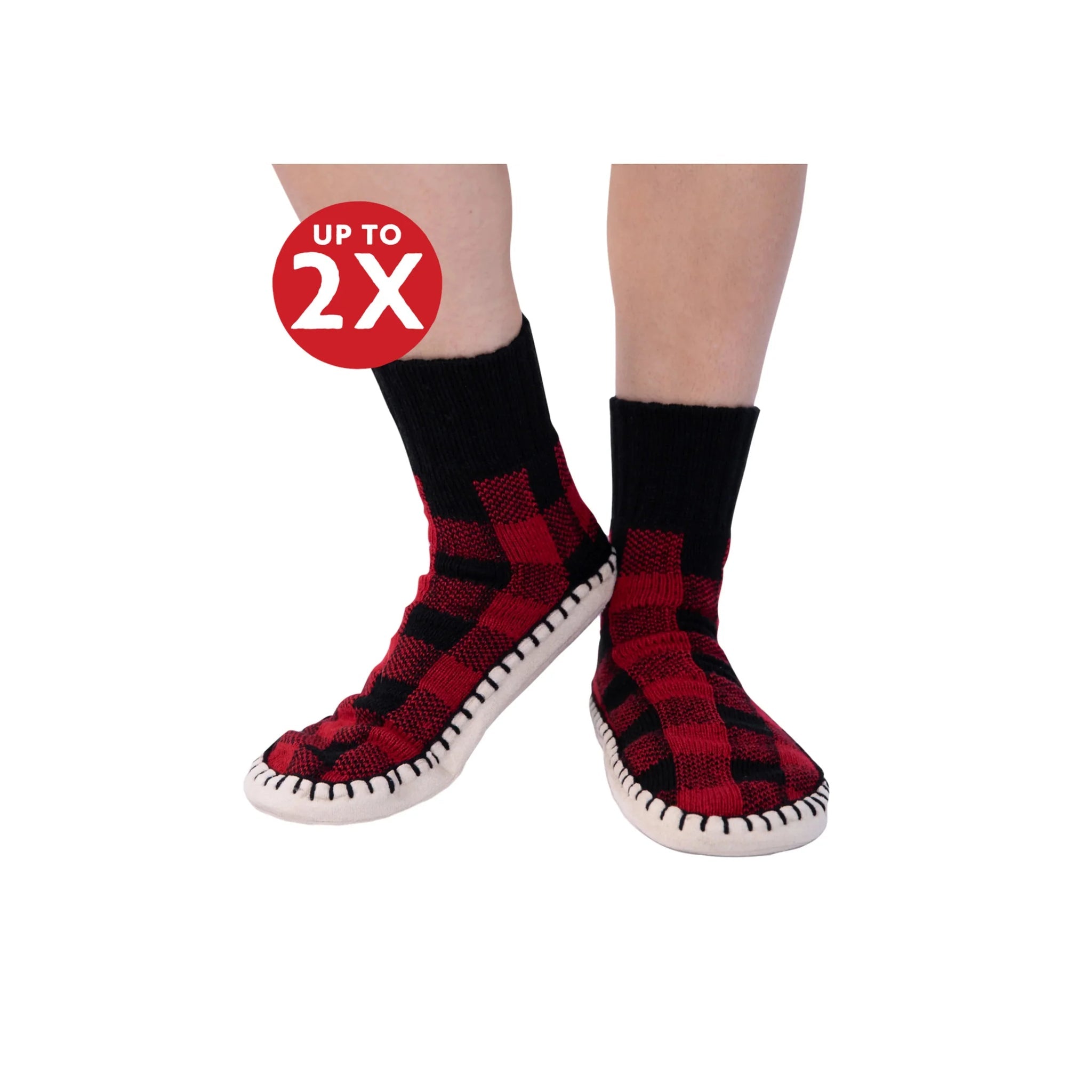 Step into ultimate cozy campfire vibes with the Lazy One Plaid Short Mukluk Slippers.