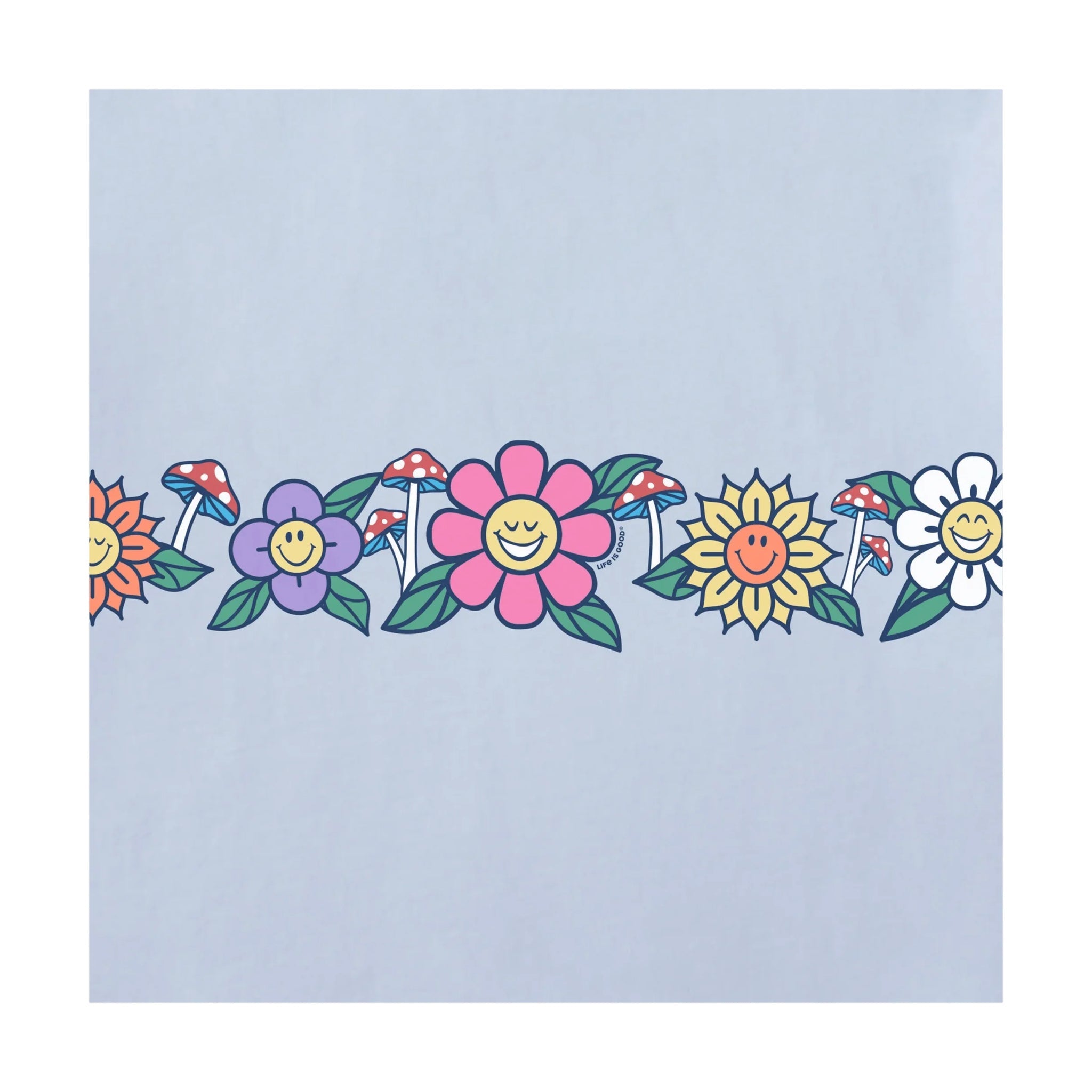 Featuring whimsical flowers and mushrooms in a fun seam-to-seam design, it's the perfect companion for school, playdates, or cozy classroom days. The soft glacier blue backdrop keeps things cool and casual, while the comfortable fleece lining makes it ideal for layering through changing seasons. Let your child's personality bloom with this feel-good essential that celebrates life's simple joys.
