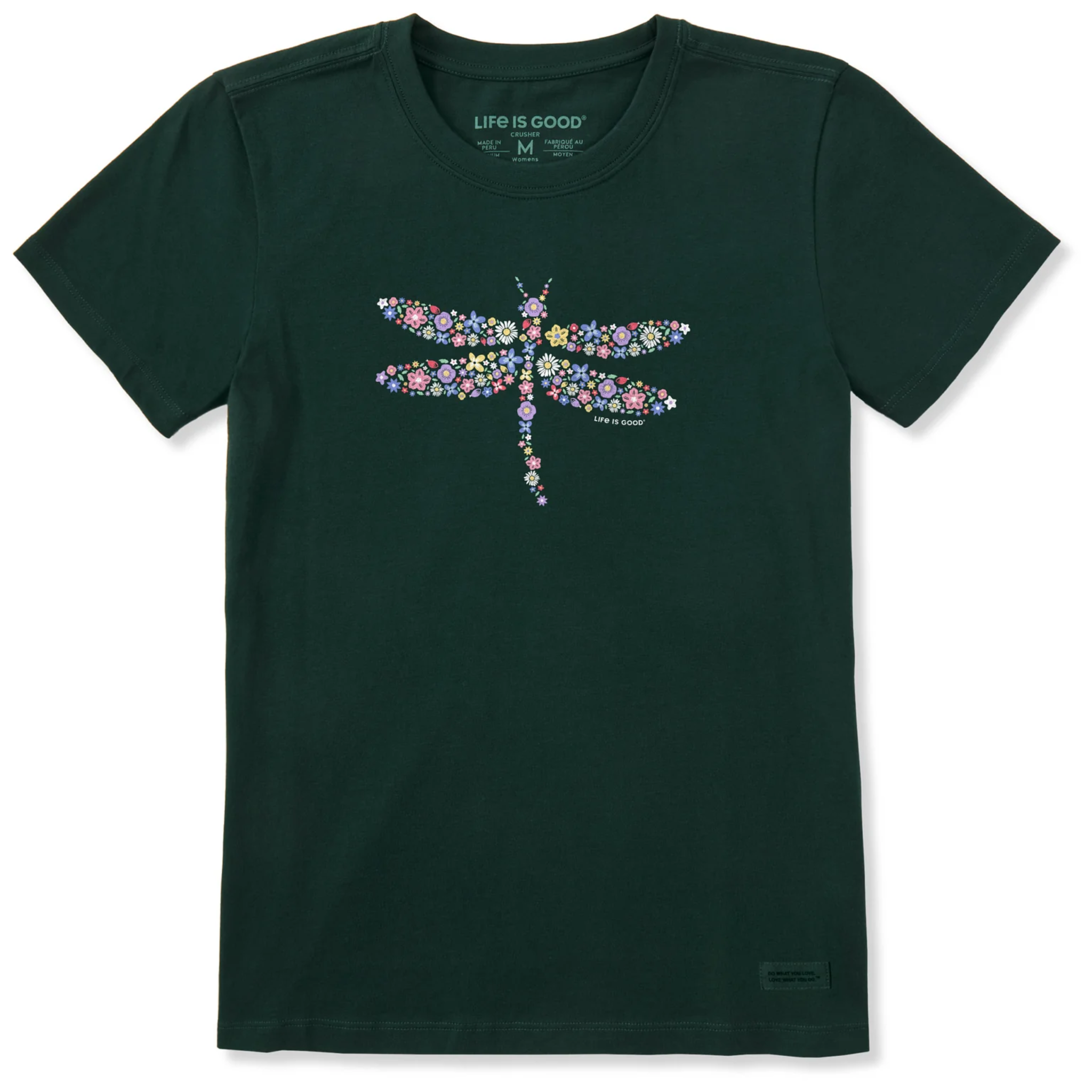 Life Is Good Women's Dragonfly Flowers Short Sleeve Tee - Treeline Green