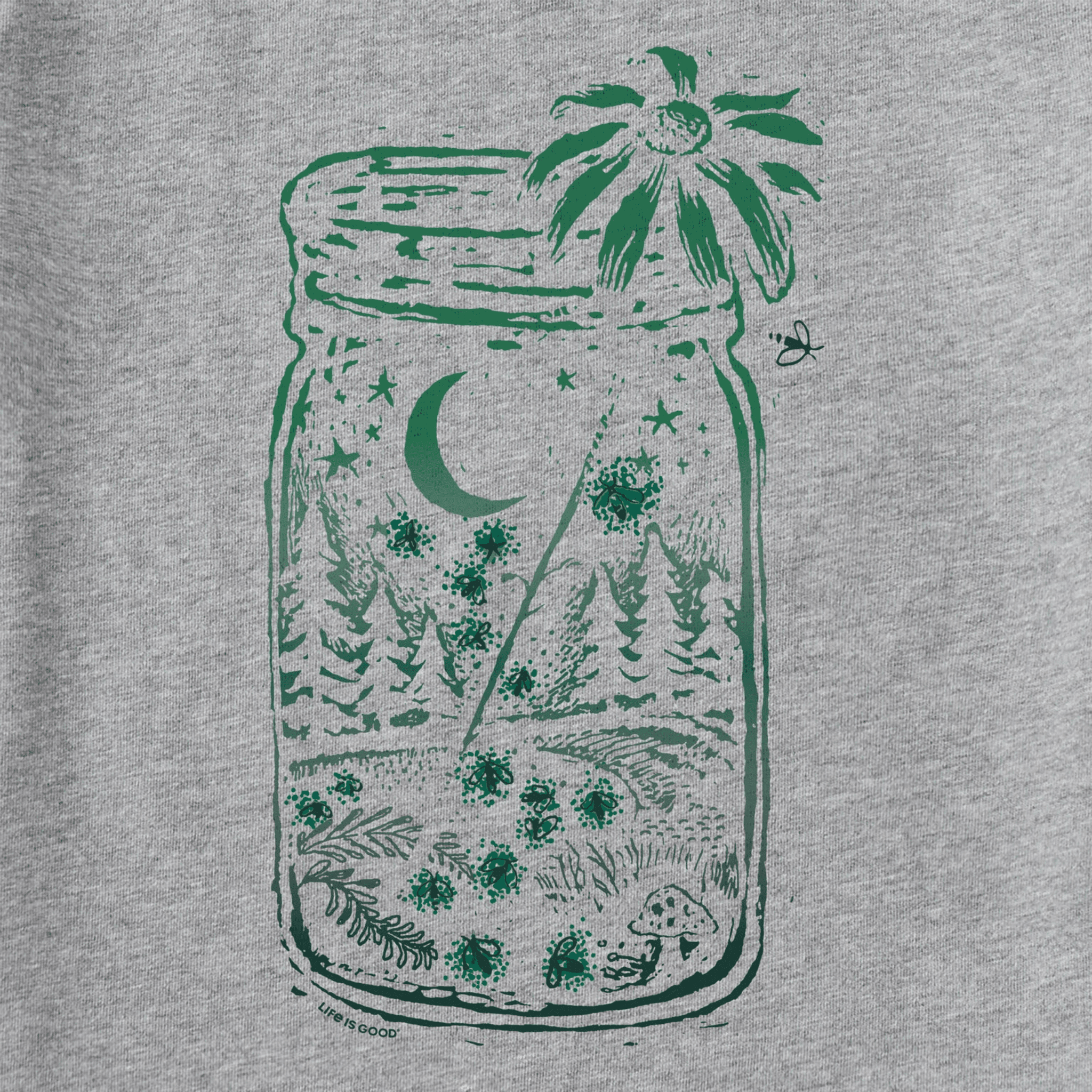 Life Is Good Women's Firefly Moon Jar Short Sleeve Crusher Tee - Heather Gray