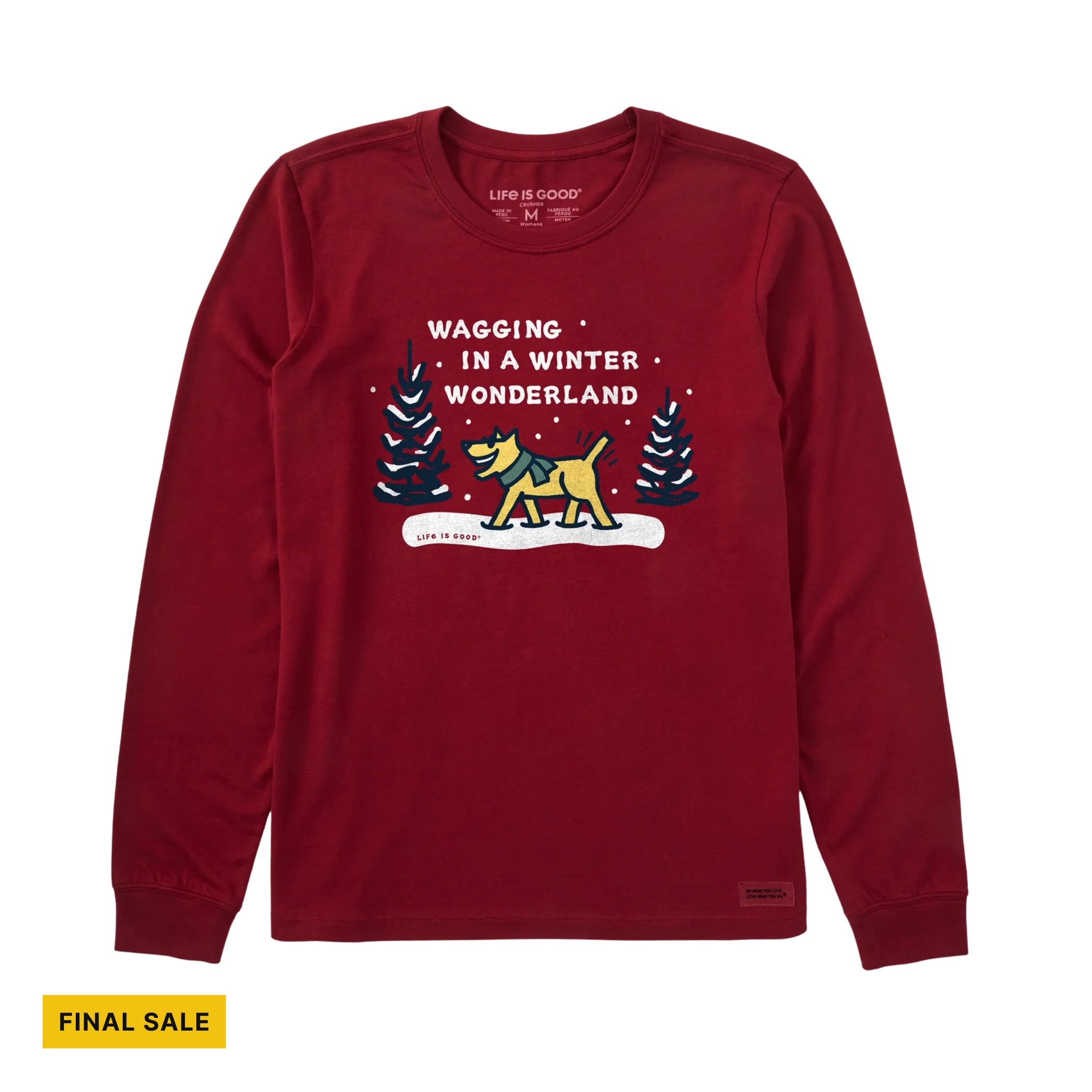 Celebrate winter’s magic with the Life Is Good Women's Wagging Wonderland Rocket Long Sleeve Crusher Tee in Adirondack Red.