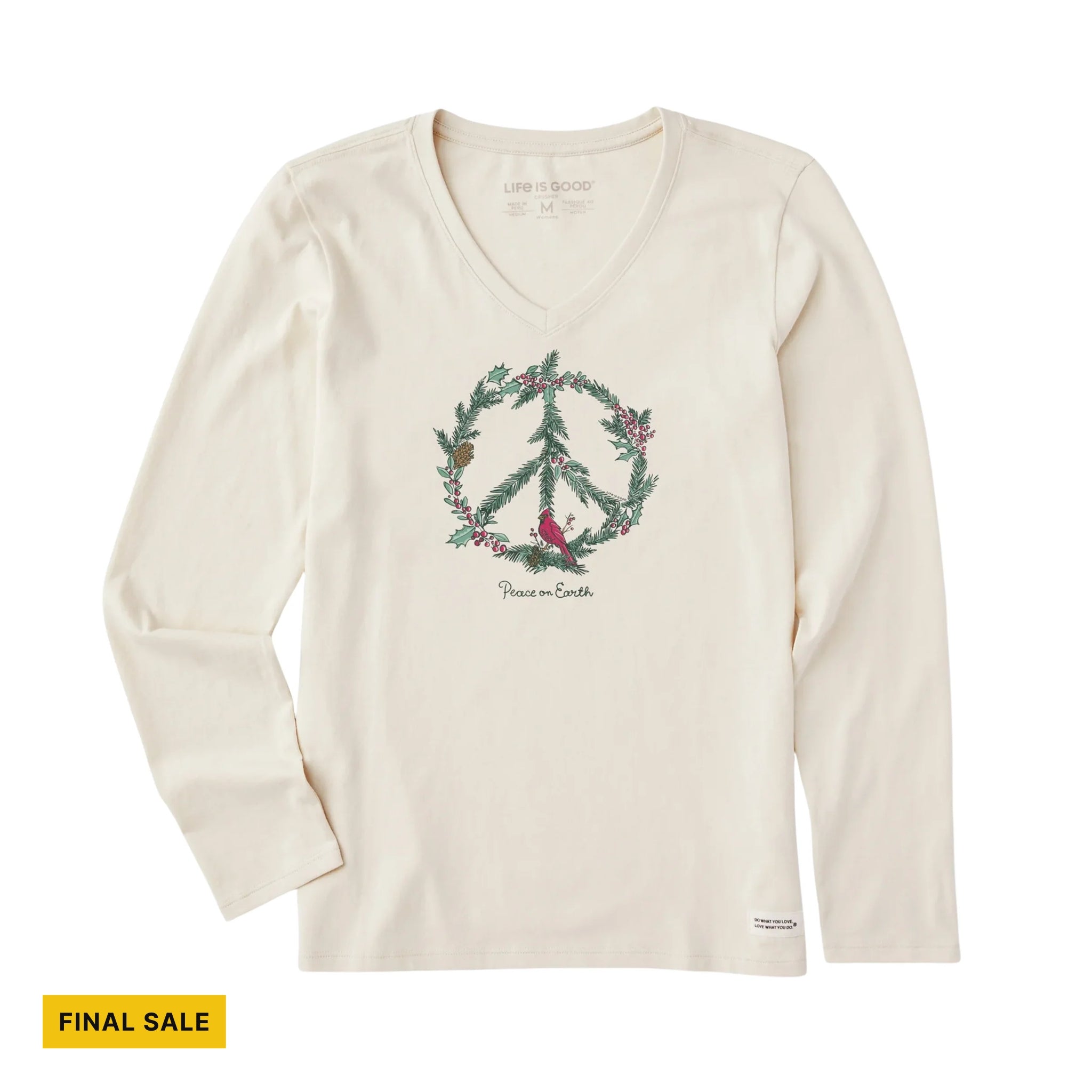 Featuring festive winter pines and a peaceful bird design, it brings joyful vibes and seasonal spirit to your wardrobe. The soft crusher lite fabric keeps you comfy while sharing a message of peace on Earth, perfect for chilly days filled with warmth and cheer.