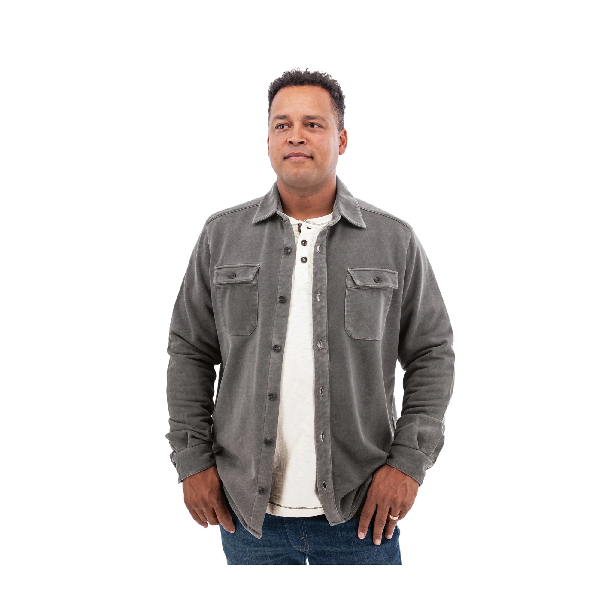 This relaxed-fit long sleeve button-down transitions seamlessly from lazy mornings at home to quick errands around town. Soft fabric keeps you comfortable whether you're lounging on the couch or grabbing coffee with friends. The classic smoked pearl hue pairs with everything in your closet, making it the go-to shirt that works as hard as you do—without any fuss.
