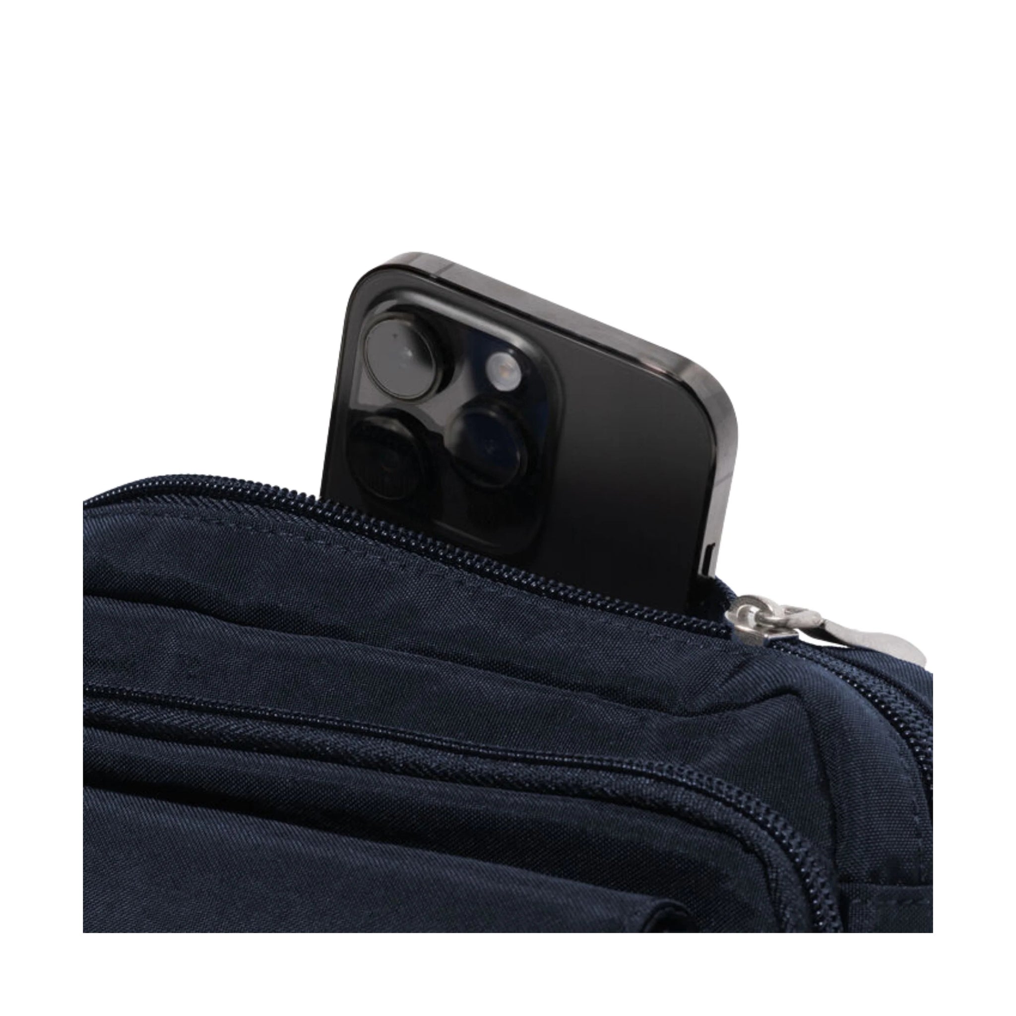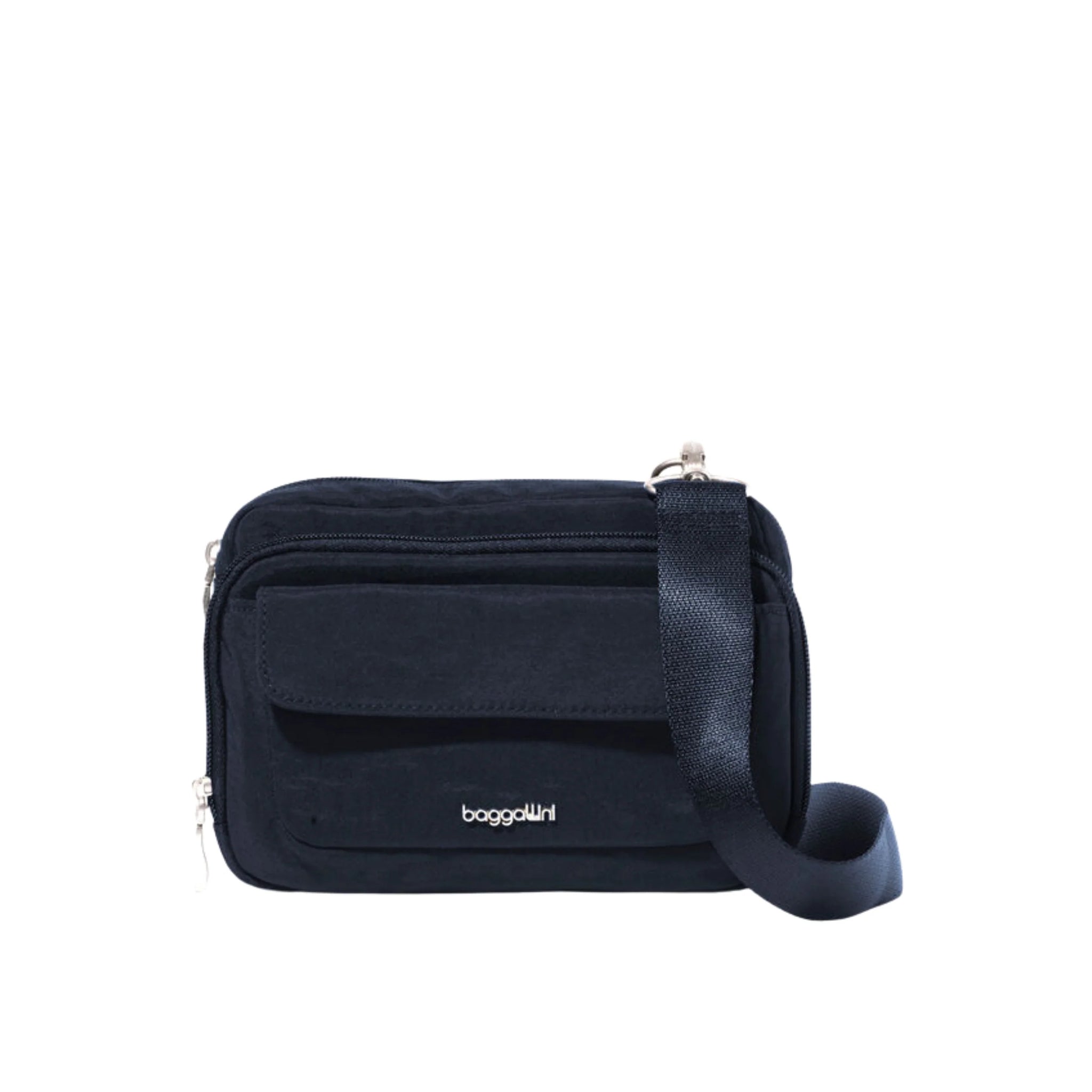 Keep your essentials neatly organized with the Baggallini Modern Double Zip Crossbody in French Navy.