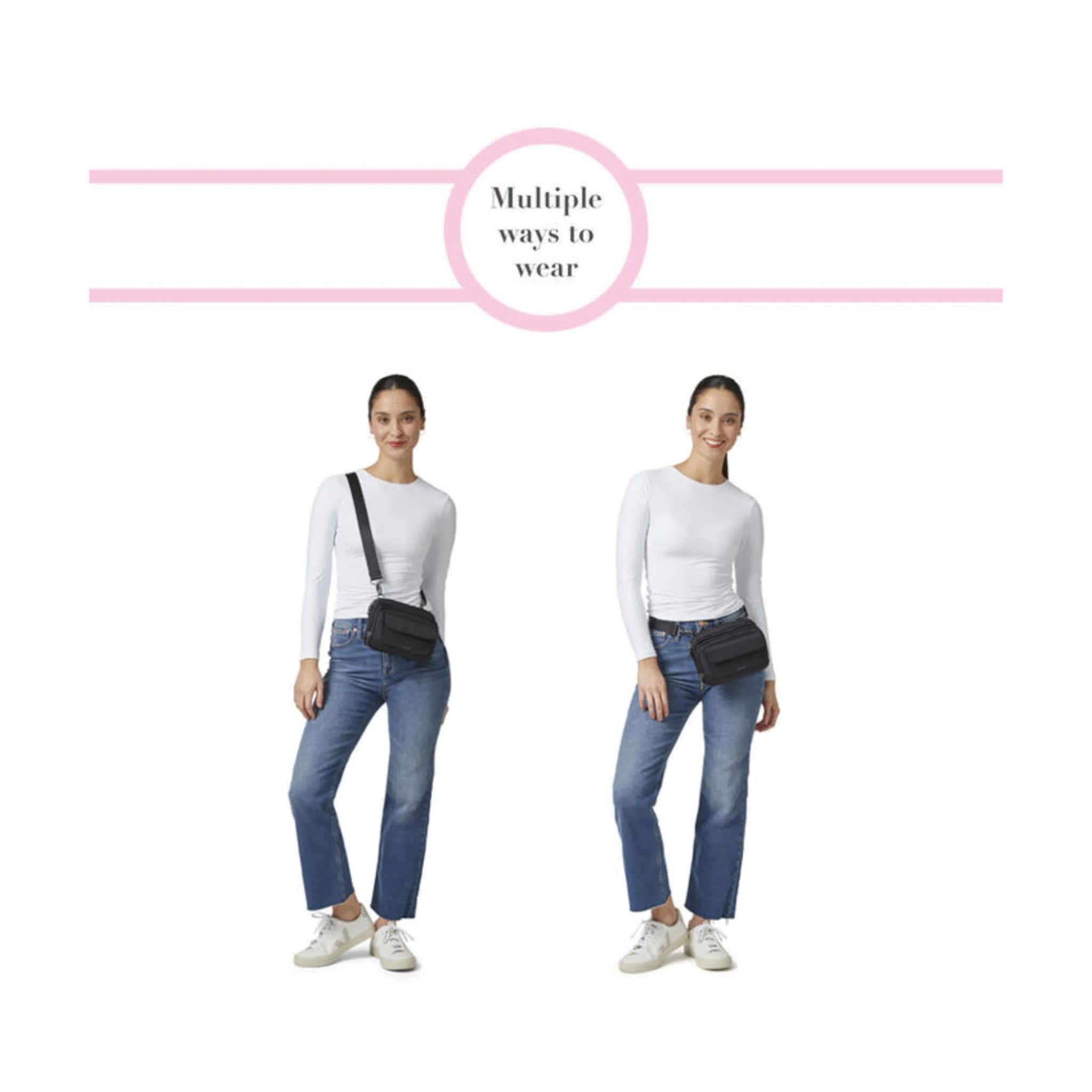 - Style converts from crossbody to waistpack - includes belt loops to attach to belt