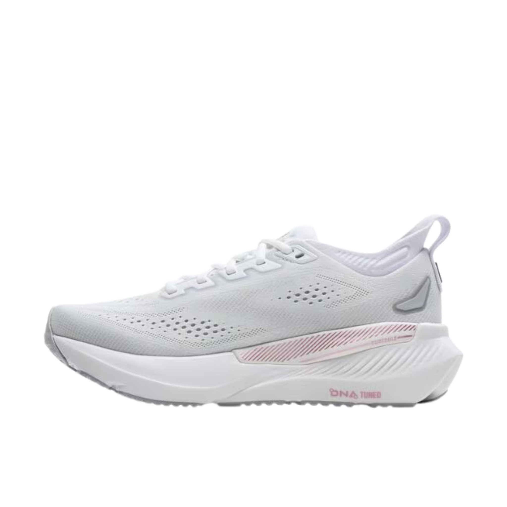 These cushioned trainers feature GuideRails™ technology to keep your stride smooth and supported, mile after mile. The plush cushioning absorbs impact while maintaining energy return, making them ideal for daily runs and long distances. Finished in a striking White, Harbor Mist, and Metallic colorway, they blend performance with style. Perfect for runners seeking comfort without compromise.