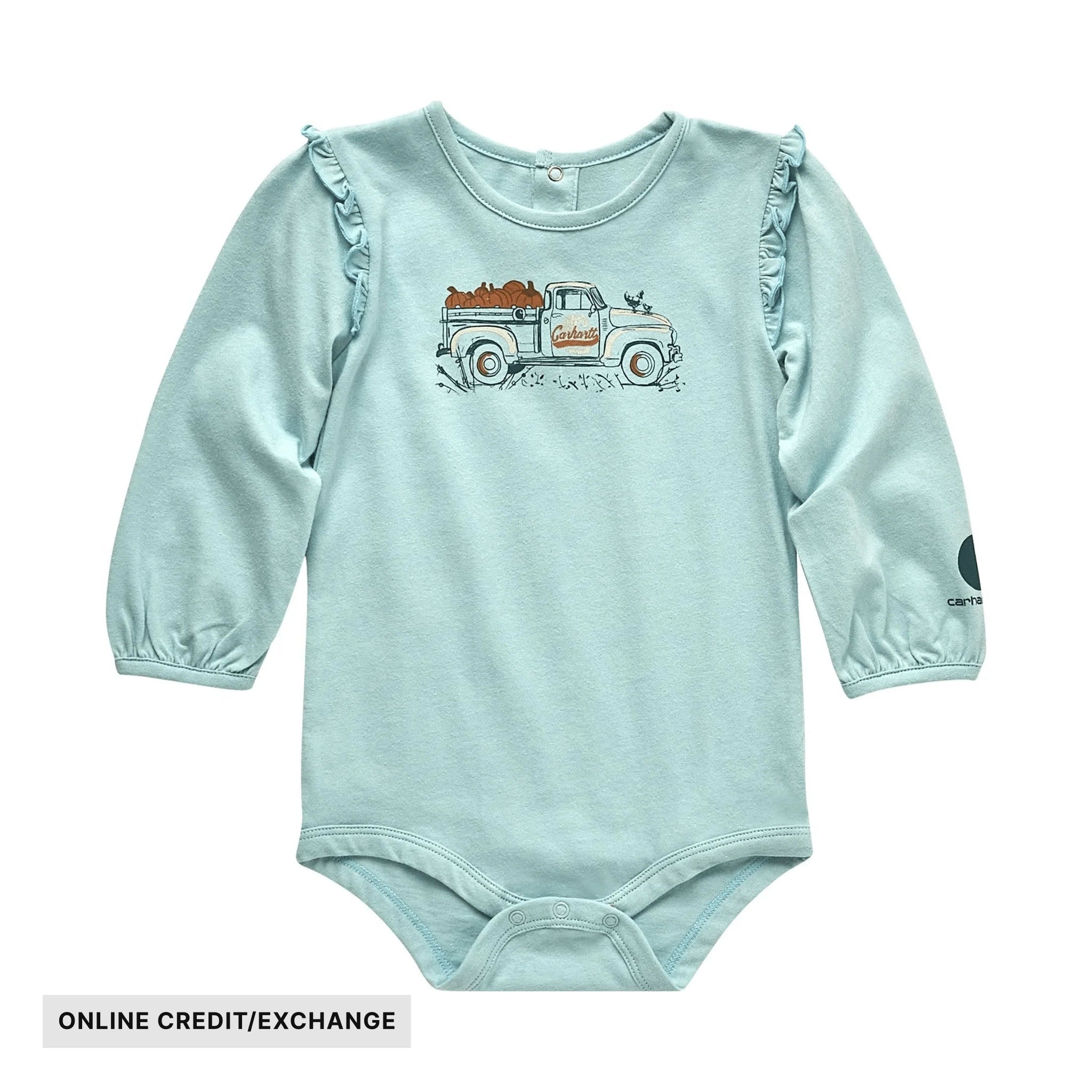 Carhartt Girls' Infant Long Sleeve Pumpkin Truck Bodysuit - Pastel Turquoise