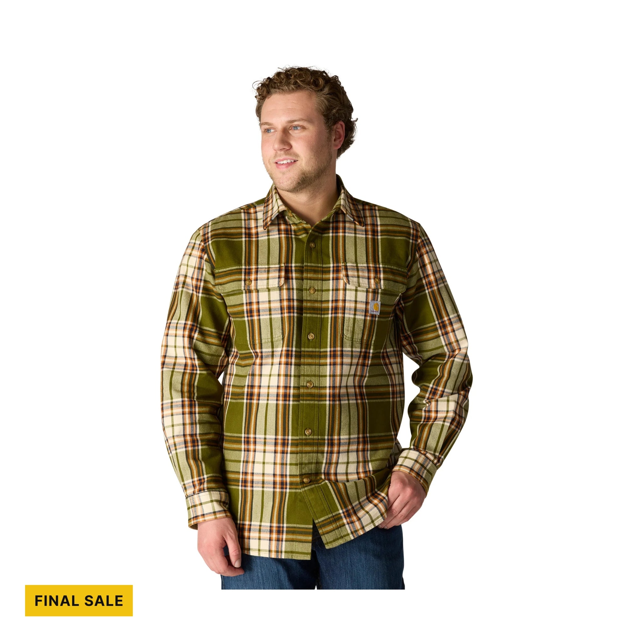 Carhartt Men's Loose Fit Heavyweight Flannel Long Sleeve Plaid Shirt - Dark Bronzed Green