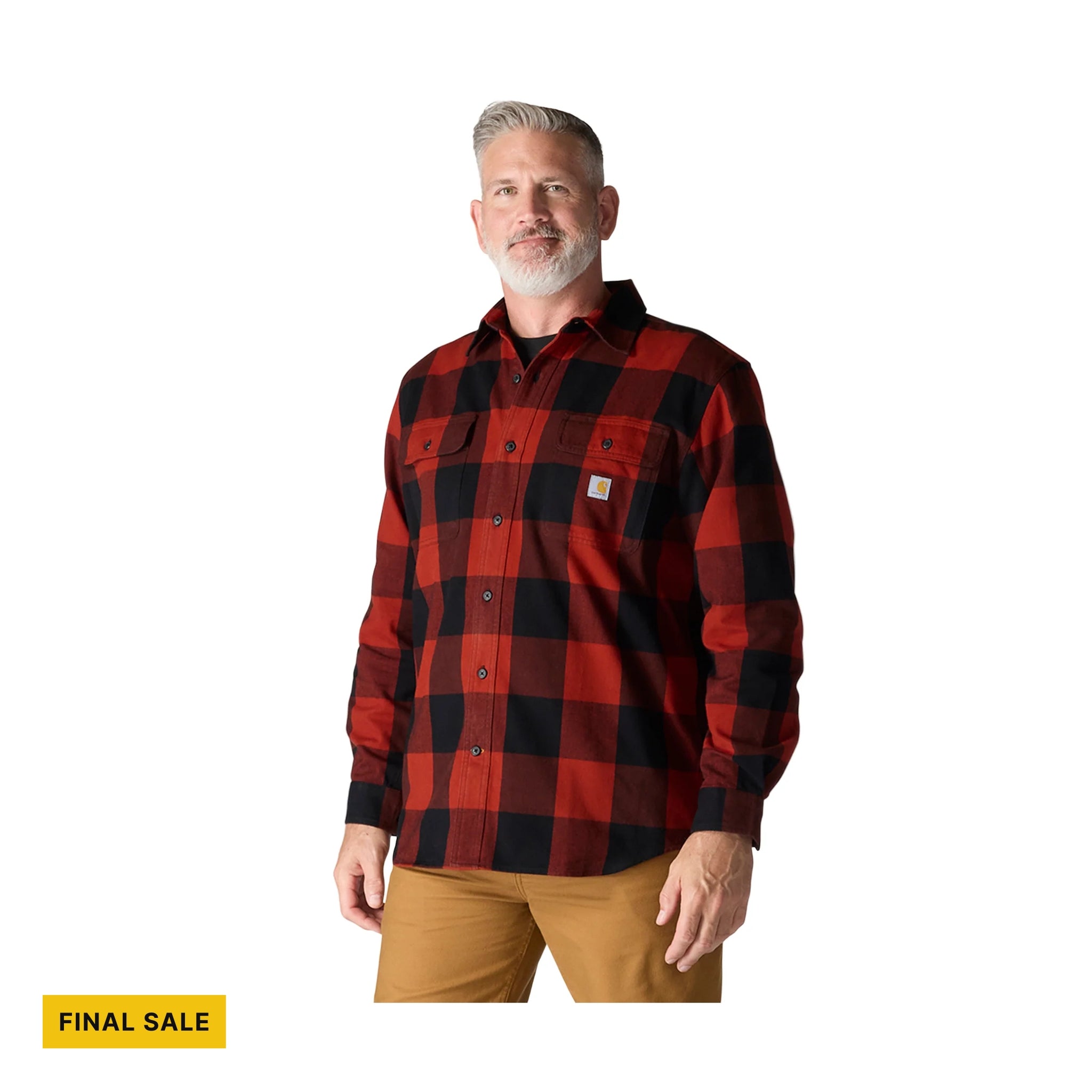 Get ready to brave the chill with the Carhartt Men's Loose Fit Heavyweight Flannel Shirt in Spice Red.