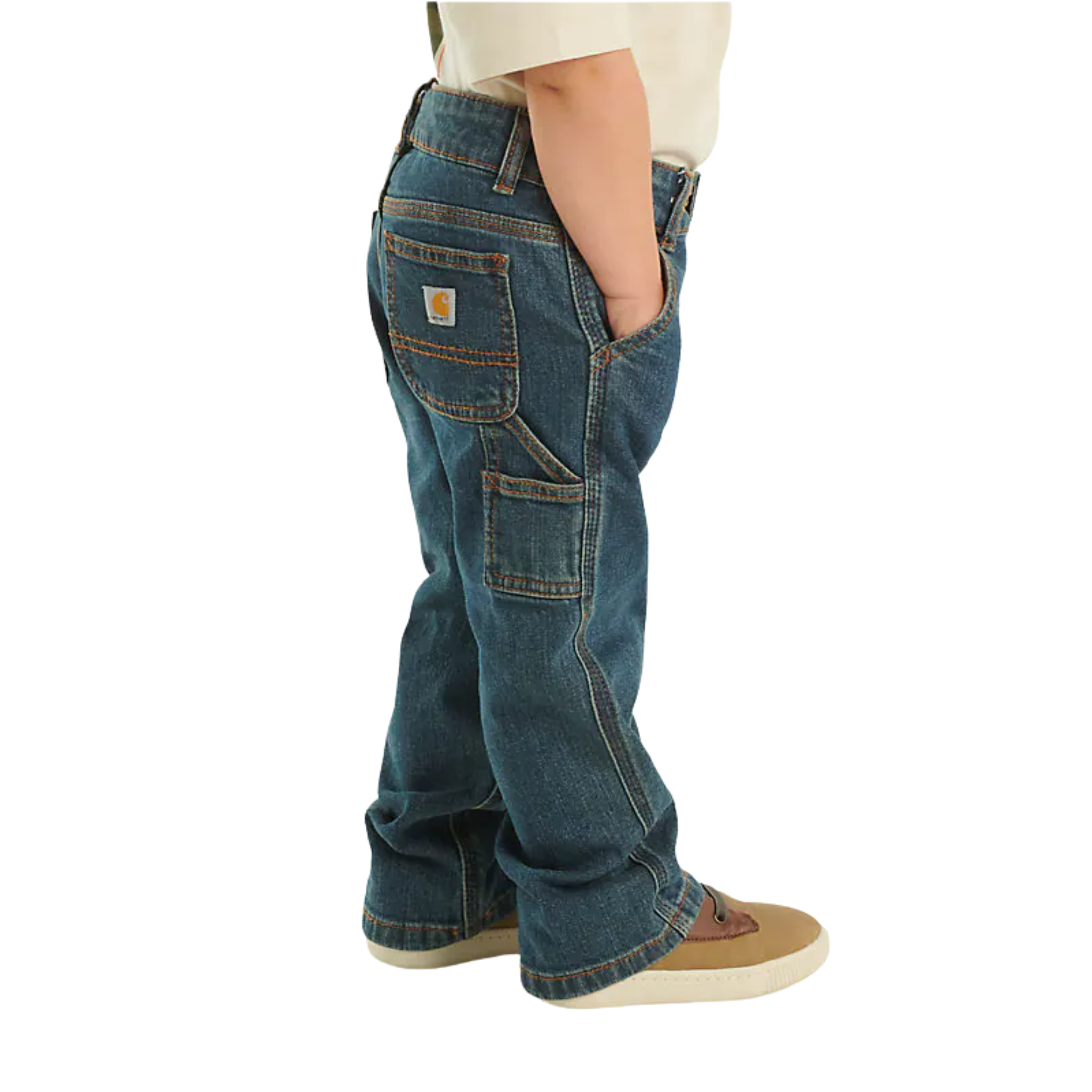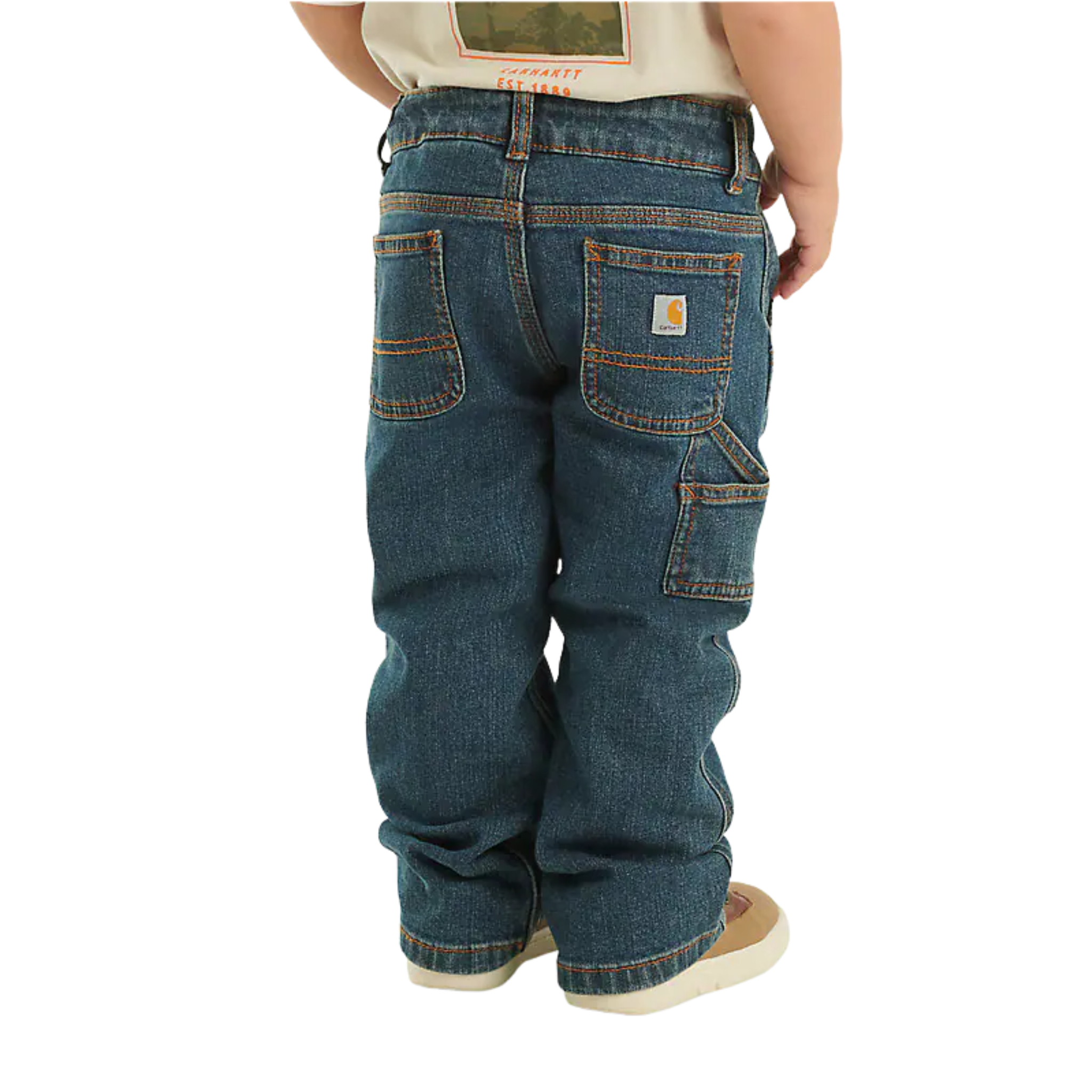 These Carhartt toddler dungaree jeans in medium wash denim are built to keep up with playtime, whether your kiddo is heading to school, exploring the great outdoors, or just living their best on-the-go life. With classic denim durability and that iconic Carhartt quality, these dungarees offer comfort and style that can handle whatever mischief comes their way. Perfect for active toddlers who refuse to slow down.