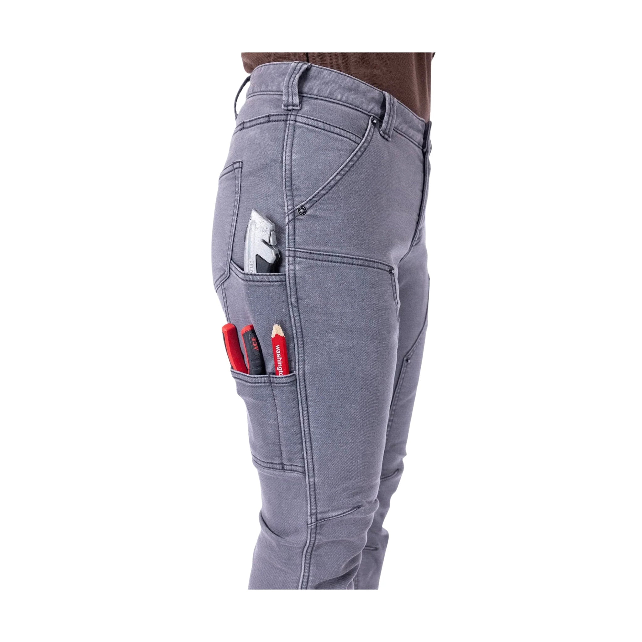 Designed for chilly days, these grey denim workwear pants combine cozy thermal lining with durable stretch fabric, keeping you comfortable and protected no matter the task. Perfect for winter workdays, they offer flexible fit and lasting wear, so you can power through cold weather with style and confidence.