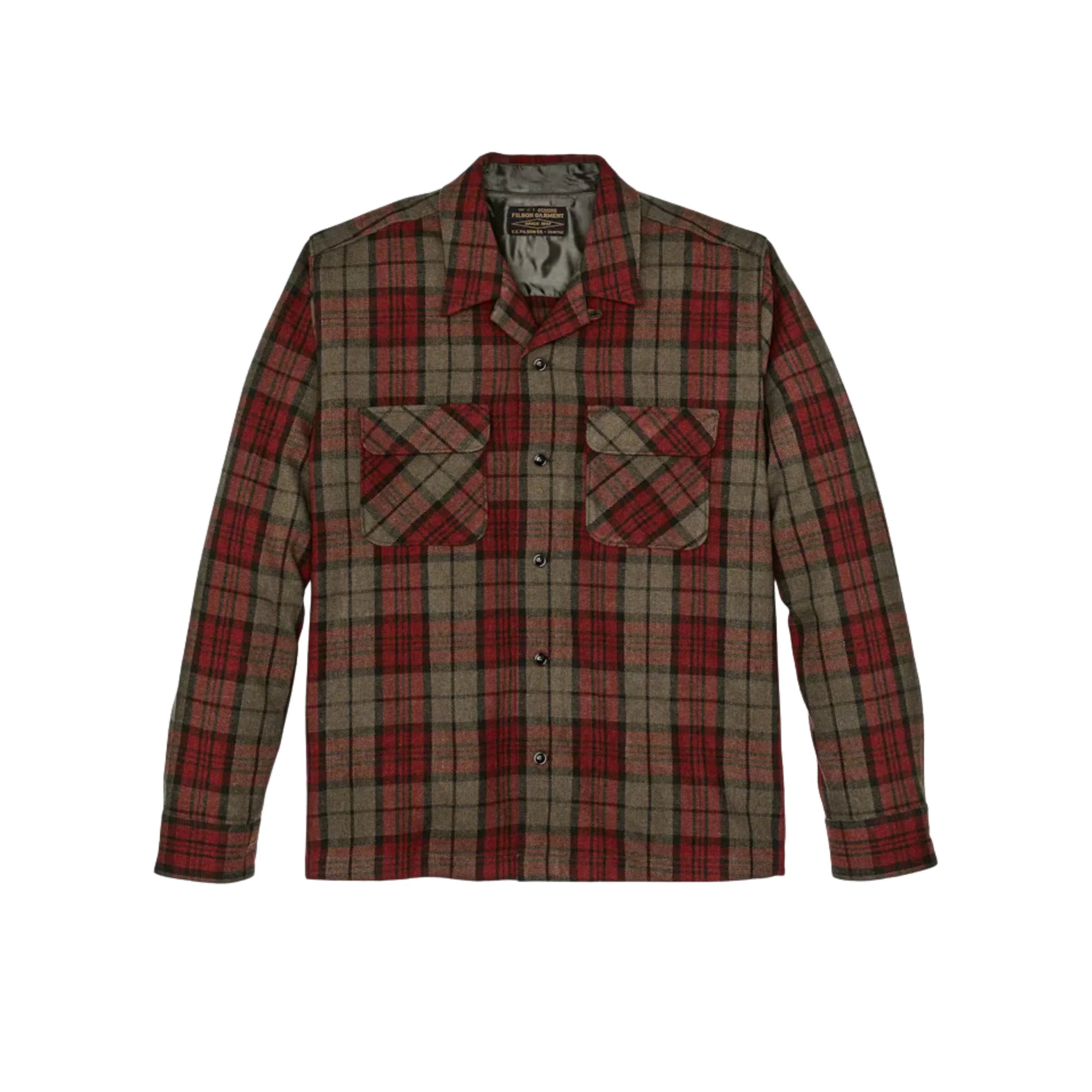 Filson Men's Buckner Wool Camp Shirt - Olive/Red Multi Plaid