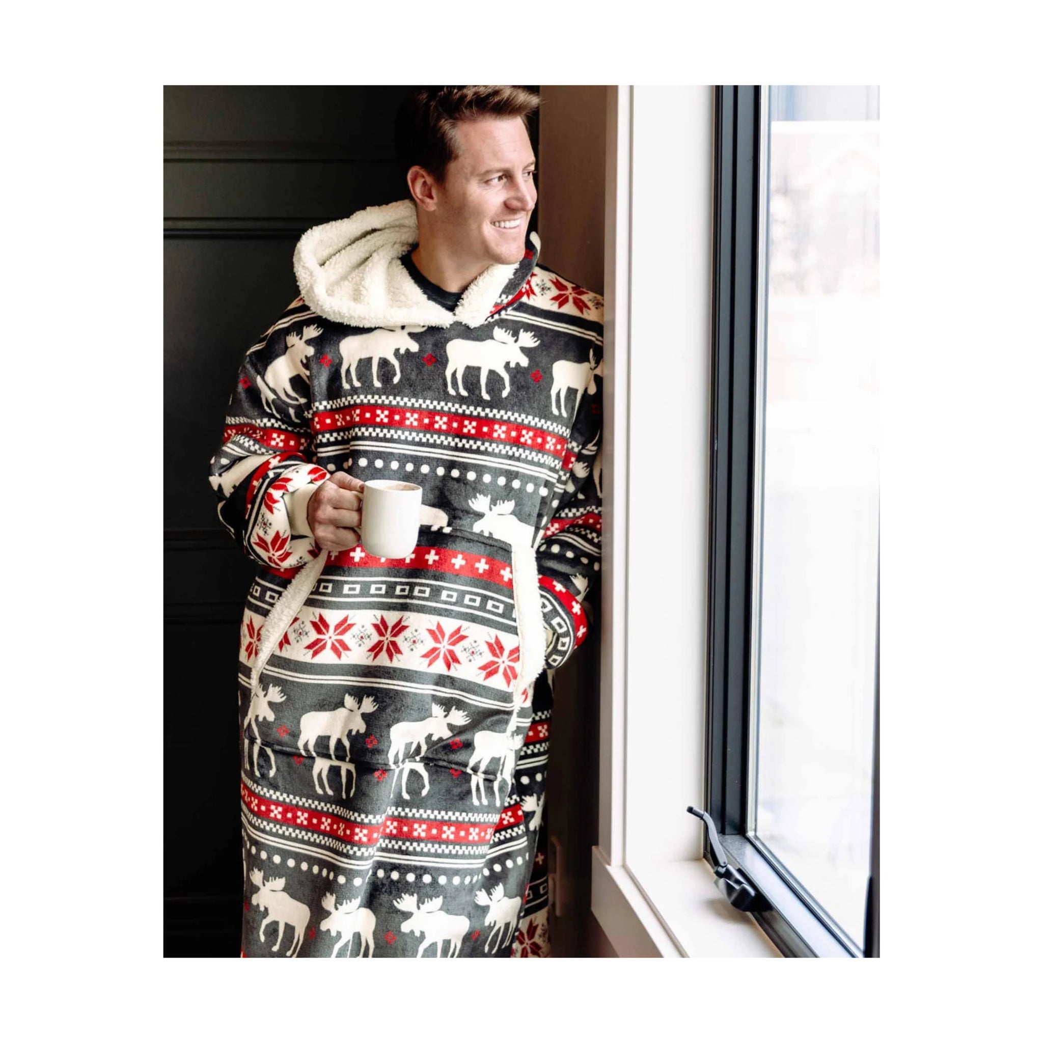 Featuring a fuzzy moose design, this playful hoodie is perfect for lounging around the house and adding festive fun to your relaxation time. Stay warm and snug as you celebrate the season in ultimate comfort.