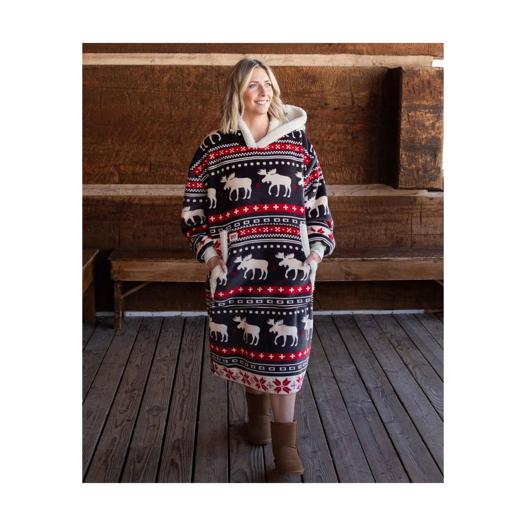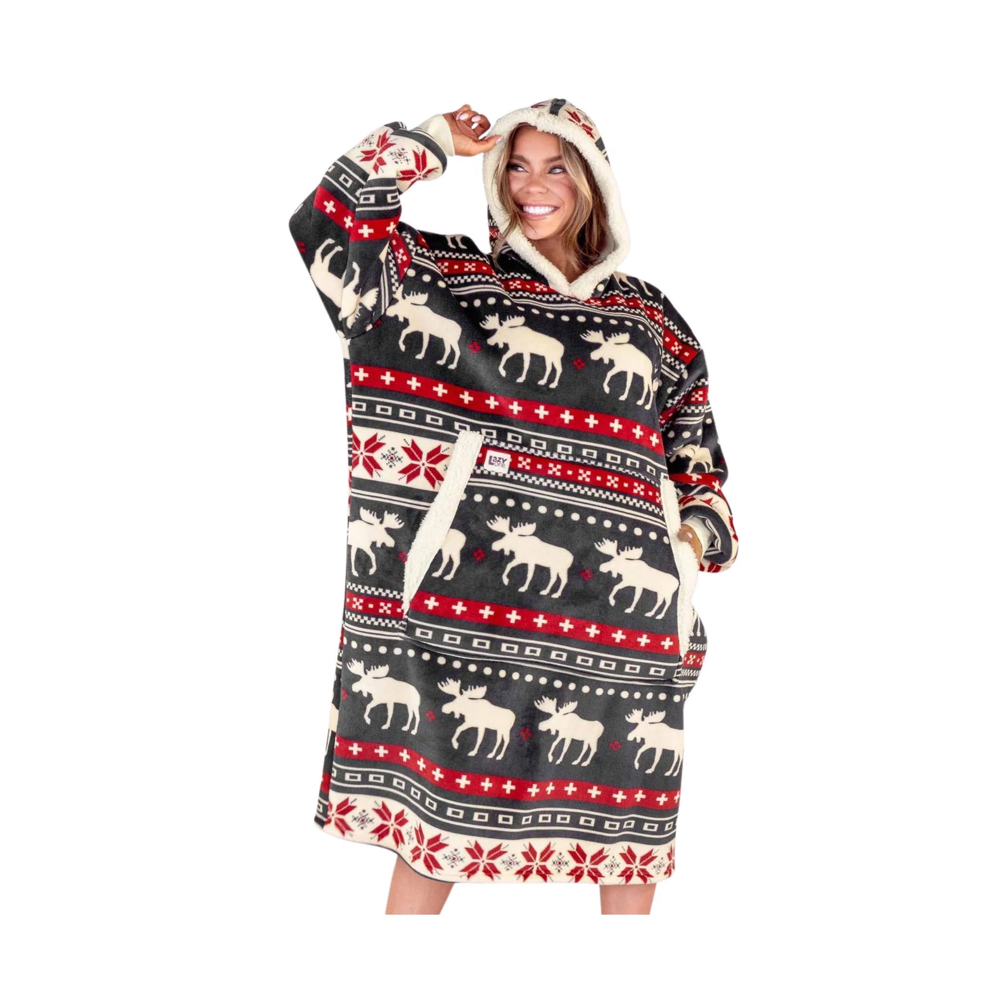 Wrap yourself in cozy holiday charm with the Lazy One Blanket Hoodie - Cabin Fair Isle.