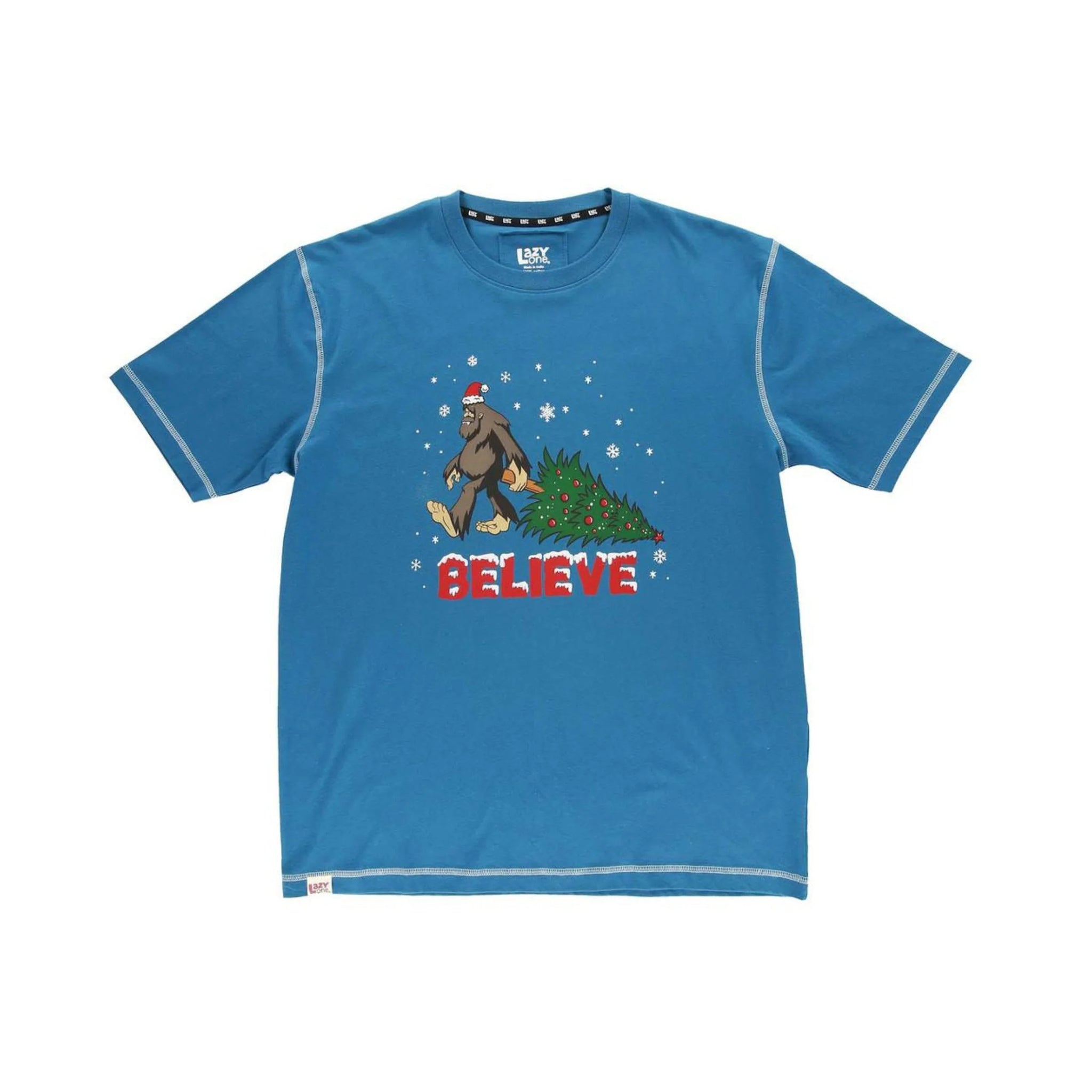 Embrace the holiday spirit with the Lazy One Men's Bigfoot Christmas PJ Tee in cheerful blue.