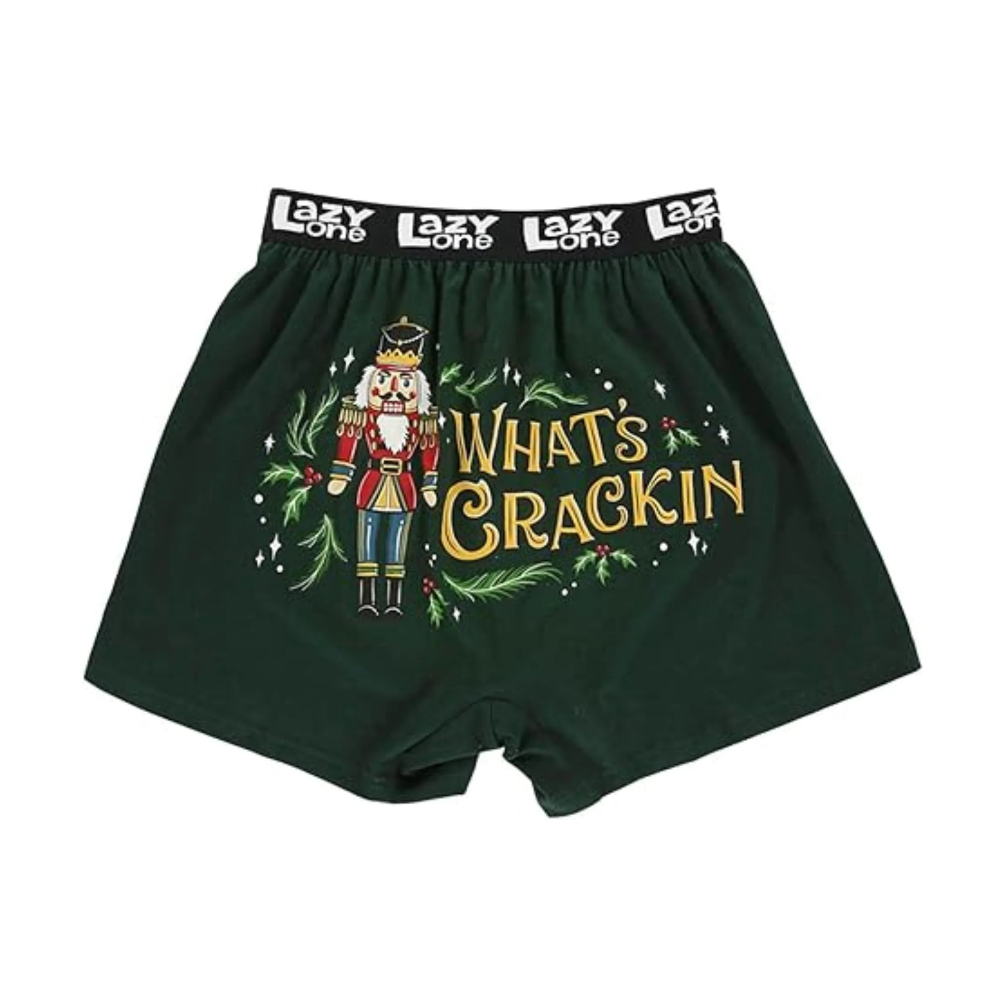 Featuring a fun nutcracker graphic and the witty phrase "What's Crackin," these boxers add charm and comfort to your Christmas season. Perfect for spreading cheer while lounging around!