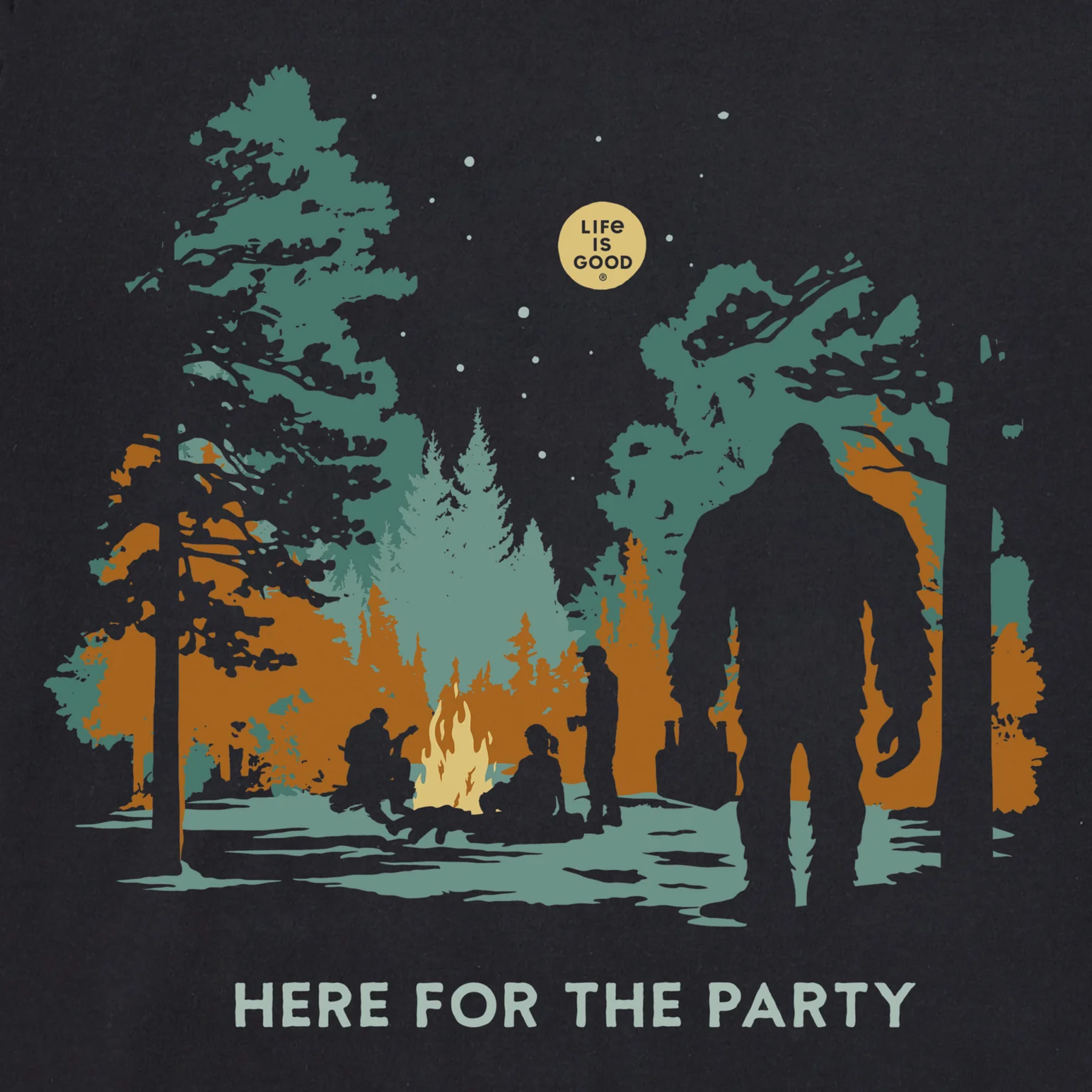 Life Is Good Men's Big Foot Here For The Party Short Sleeve Tee celebrates fun and good vibes with a faded black finish that gives it an effortlessly cool, vintage look.
