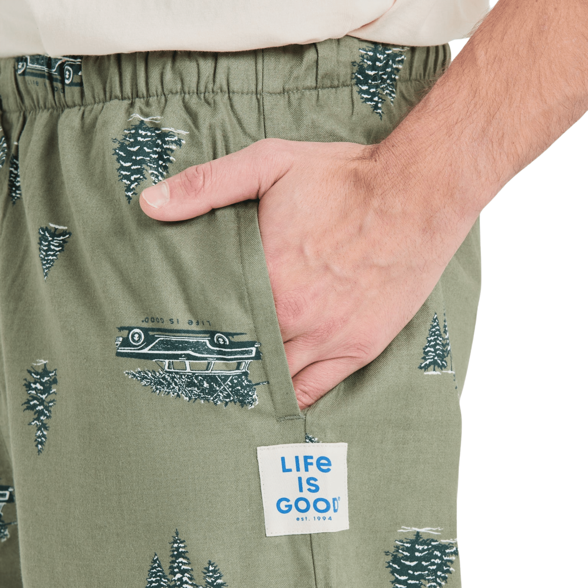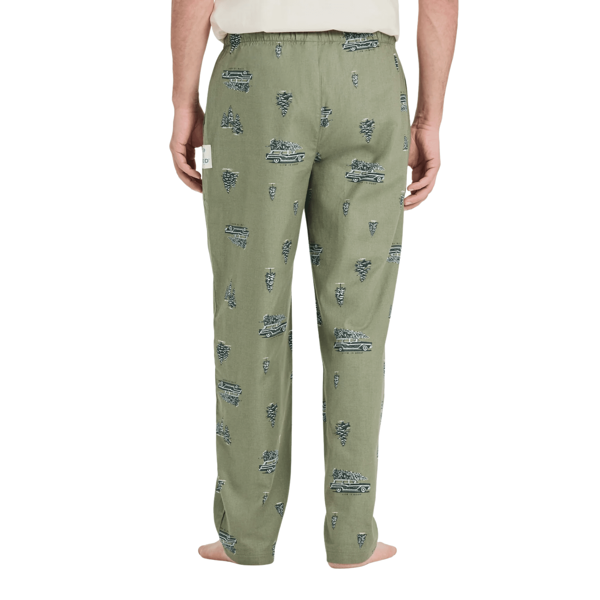 Life Is Good Men's Christmas Tree Wagon Pattern Classic Sleep Pant - Moss Green
