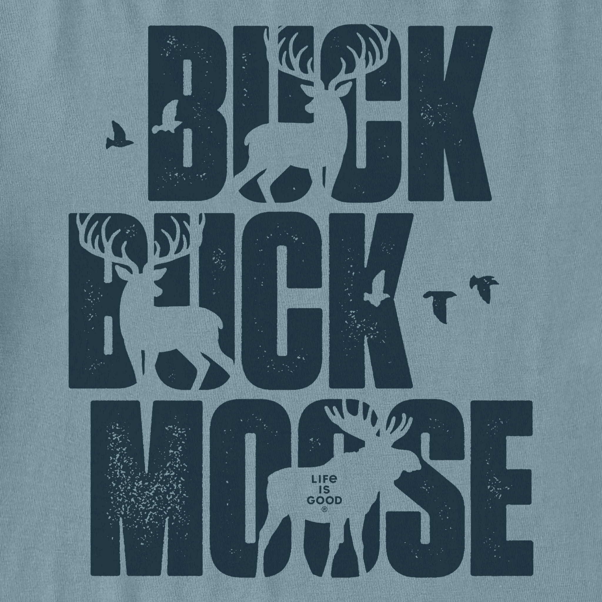 Life Is Good Men's Typeout Buck Buck Moose Bold Short Sleeve Tee - Smokey Blue