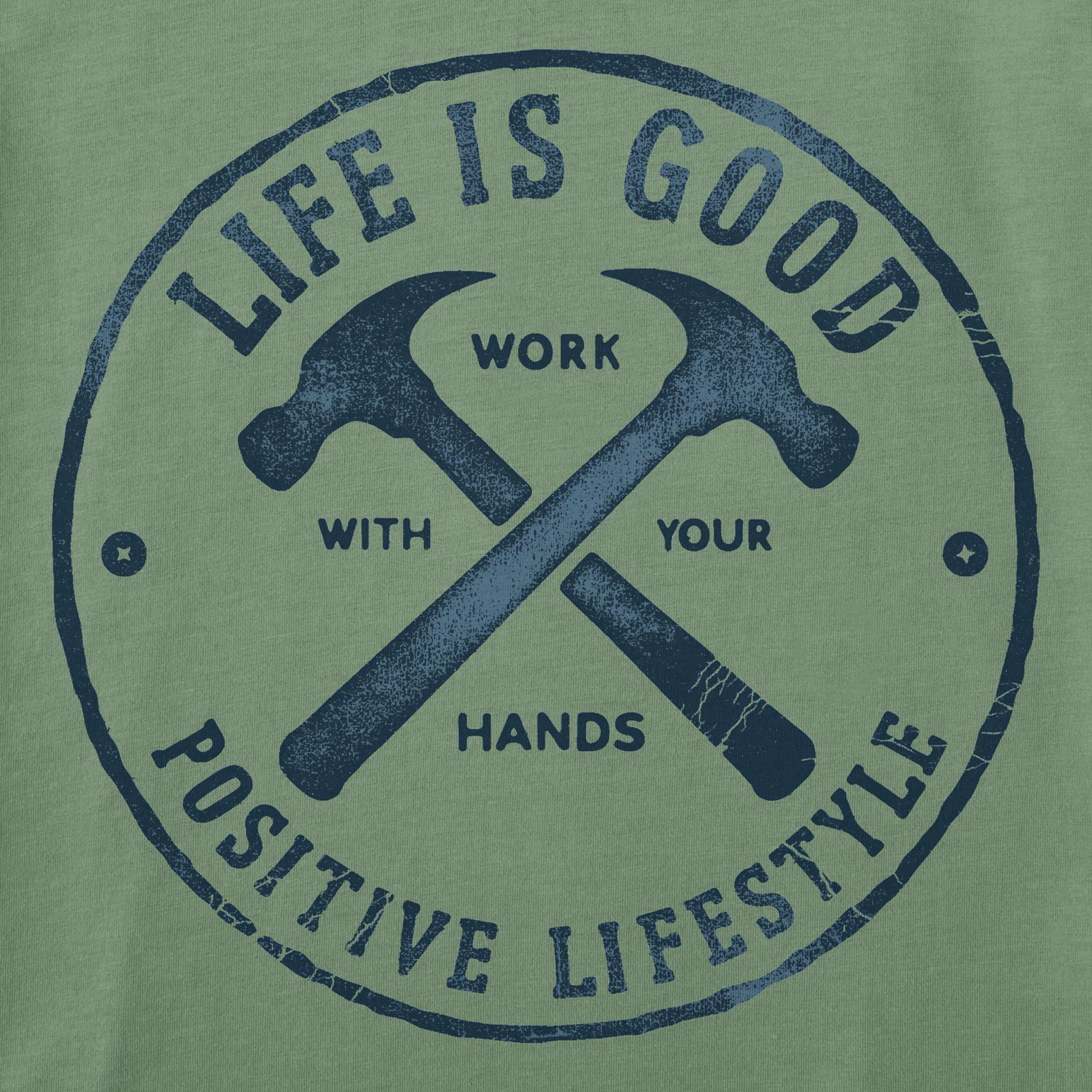 Life Is Good Men's Work With Your Hands Hammers Long Sleeve Crusher Tee - Granite Green