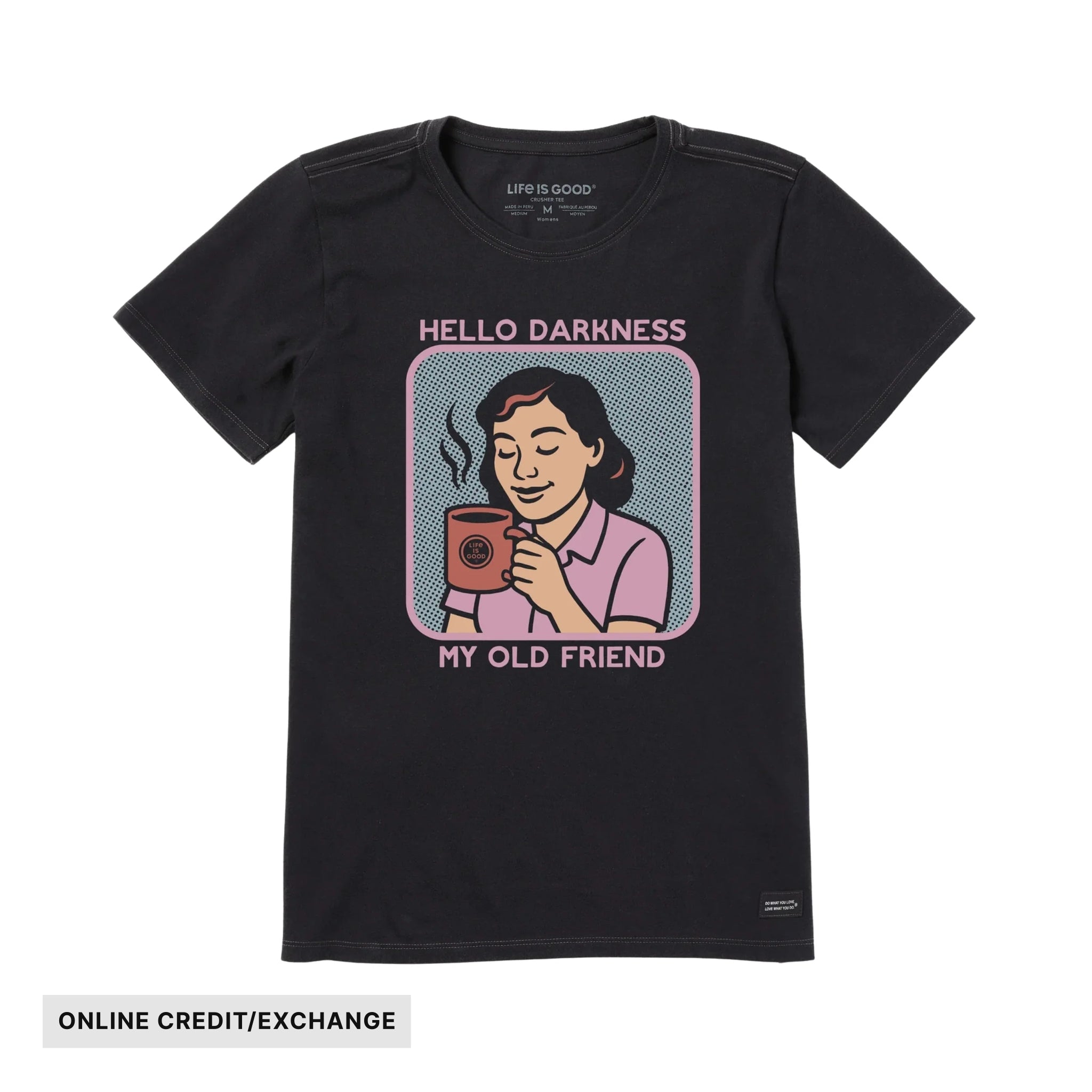 The "Hello Darkness" crusher tee in faded black pairs perfectly with your favorite mug, making those early mornings a little more bearable—and a lot more fun. Soft, casual, and effortlessly cool, it’s the perfect shirt for anyone who knows that sometimes life’s best moments happen over a strong cup and a good laugh.
