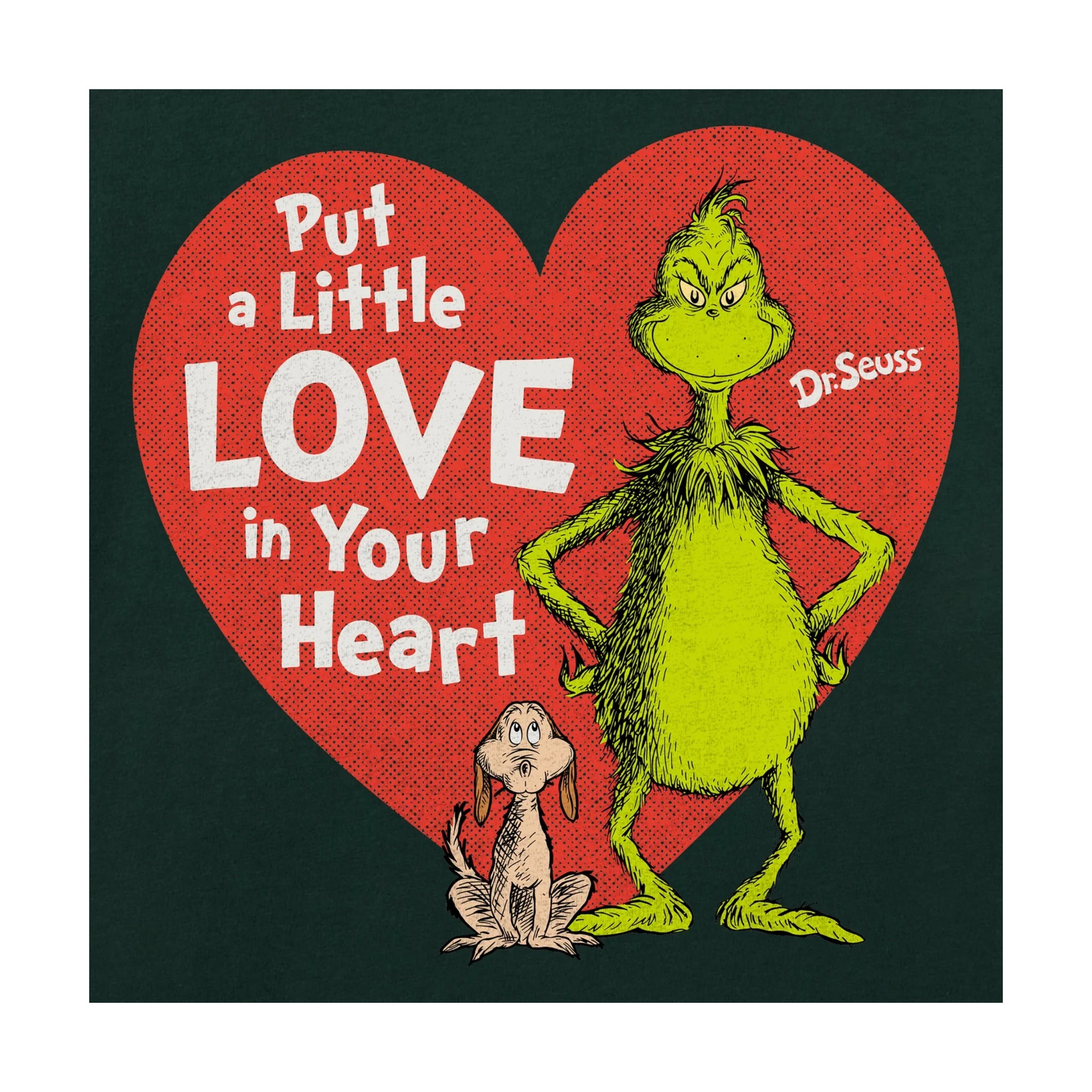 Celebrate the holiday spirit with this playful green long sleeve tee featuring the mischievous Grinch spreading a little love.