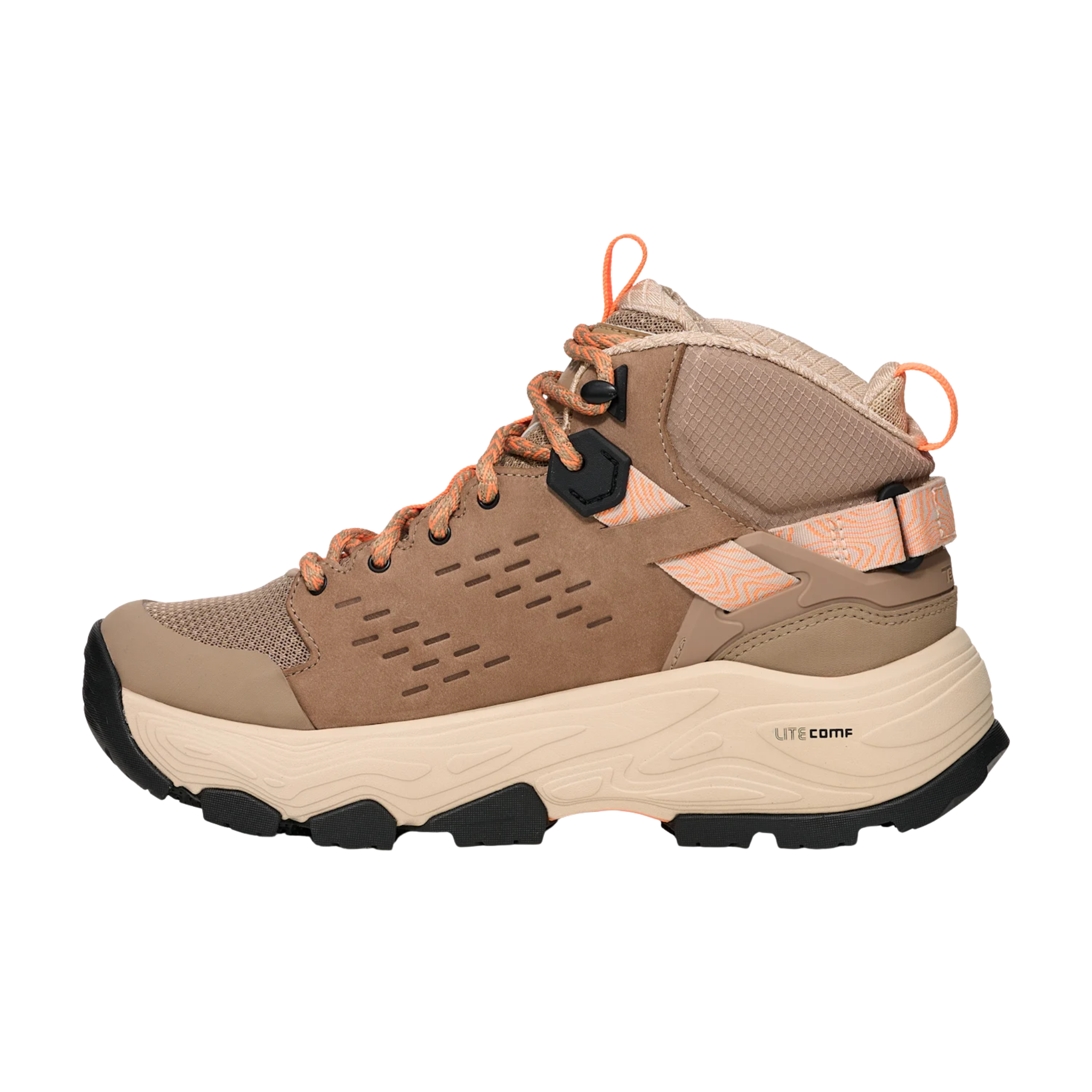 Waterproof GORE-TEX keeps feet dry on wet trails, while the Vibram MegaGrip sole delivers reliable traction on challenging terrain. The responsive LITE-COMF® midsole cushions every step, reducing fatigue on long backpacking trips. A durable toe cap and leather-textile construction withstand rugged conditions, secured by the patented Universal Heel Lock System for a locked-in fit. Speed hooks keep laces secure, and 100% REPREVE® recycled polyester webbings reflect our commitment to environmental responsibility. Built for serious hikers who demand durability, comfort, and eco-conscious gear.